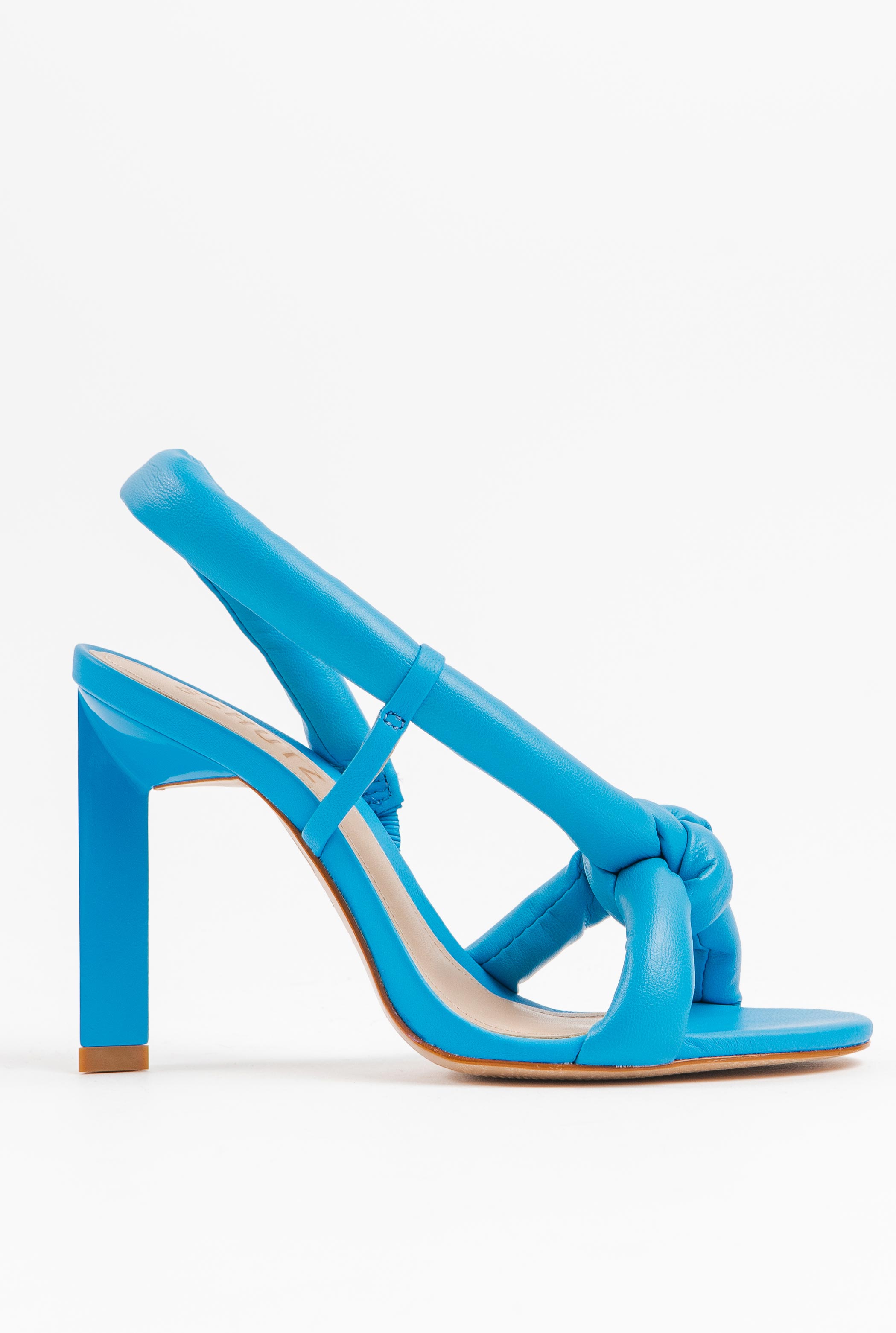 SCHUTZ pumps in solid color leather with open-toe opening and knot at the toe.