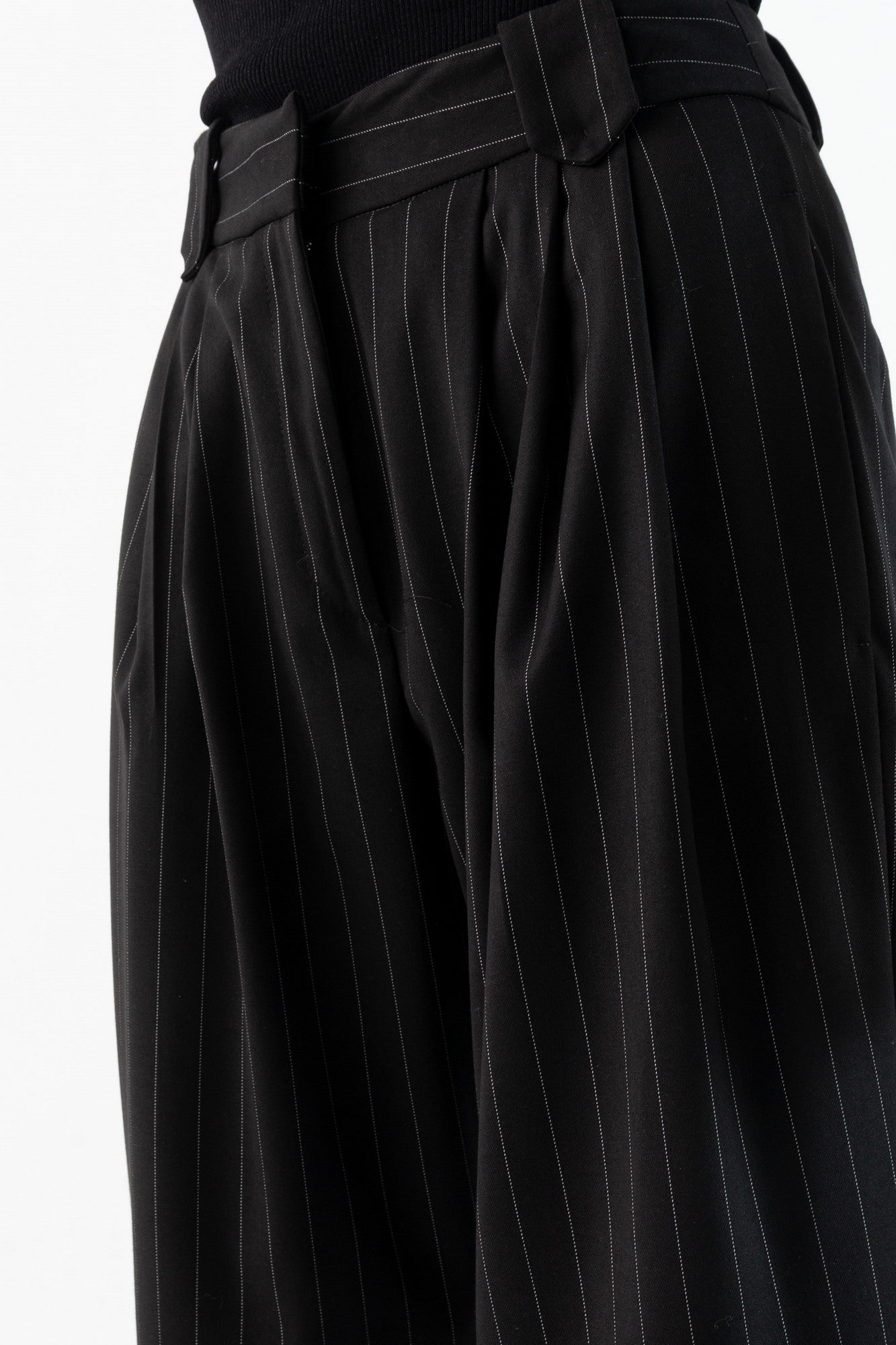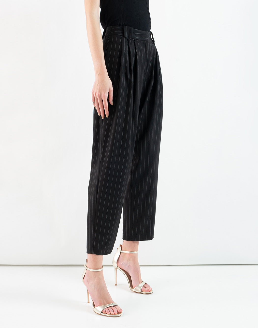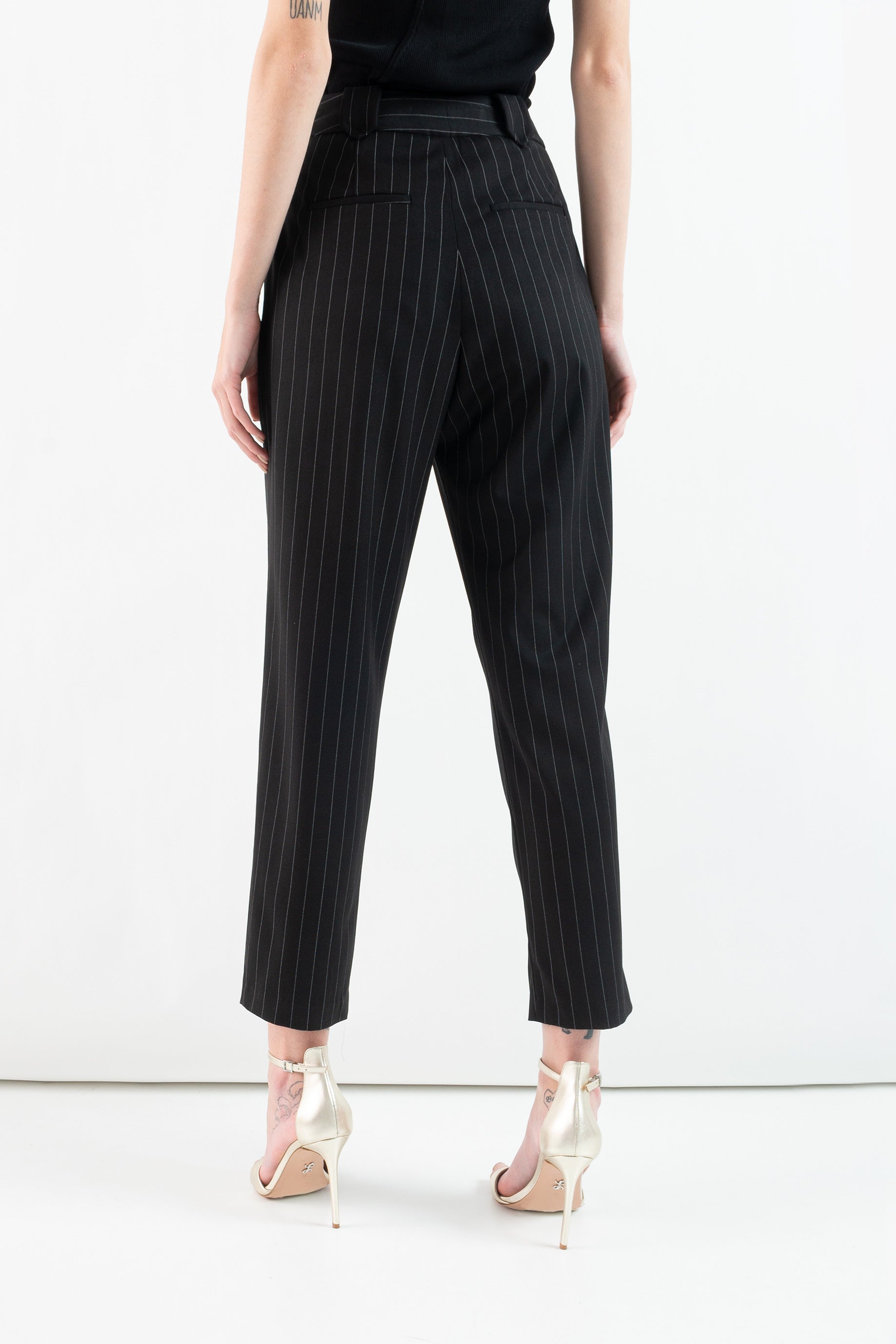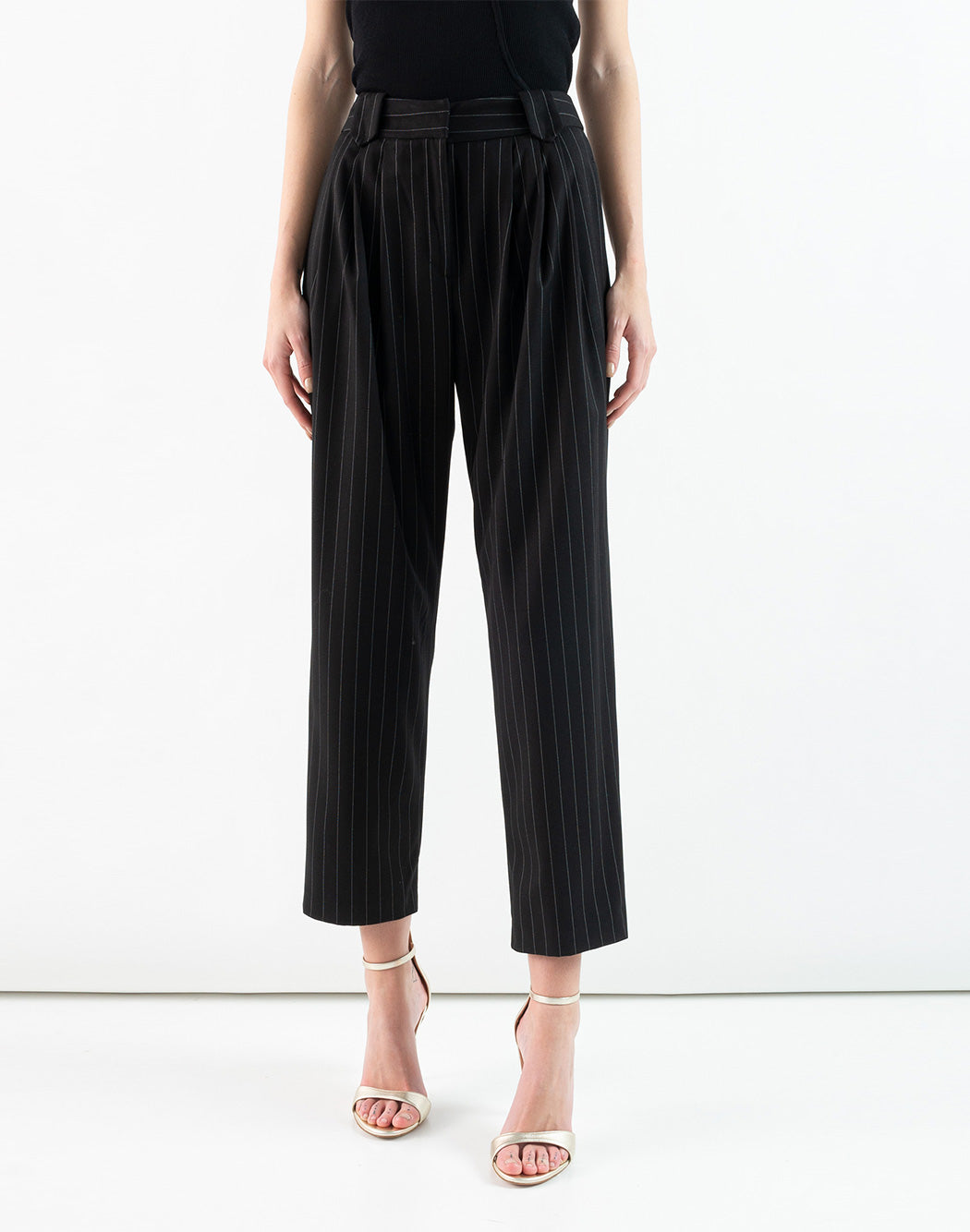 DORIS S pinstriped trousers with pleats and belt loops, concealed zip and hook closure.