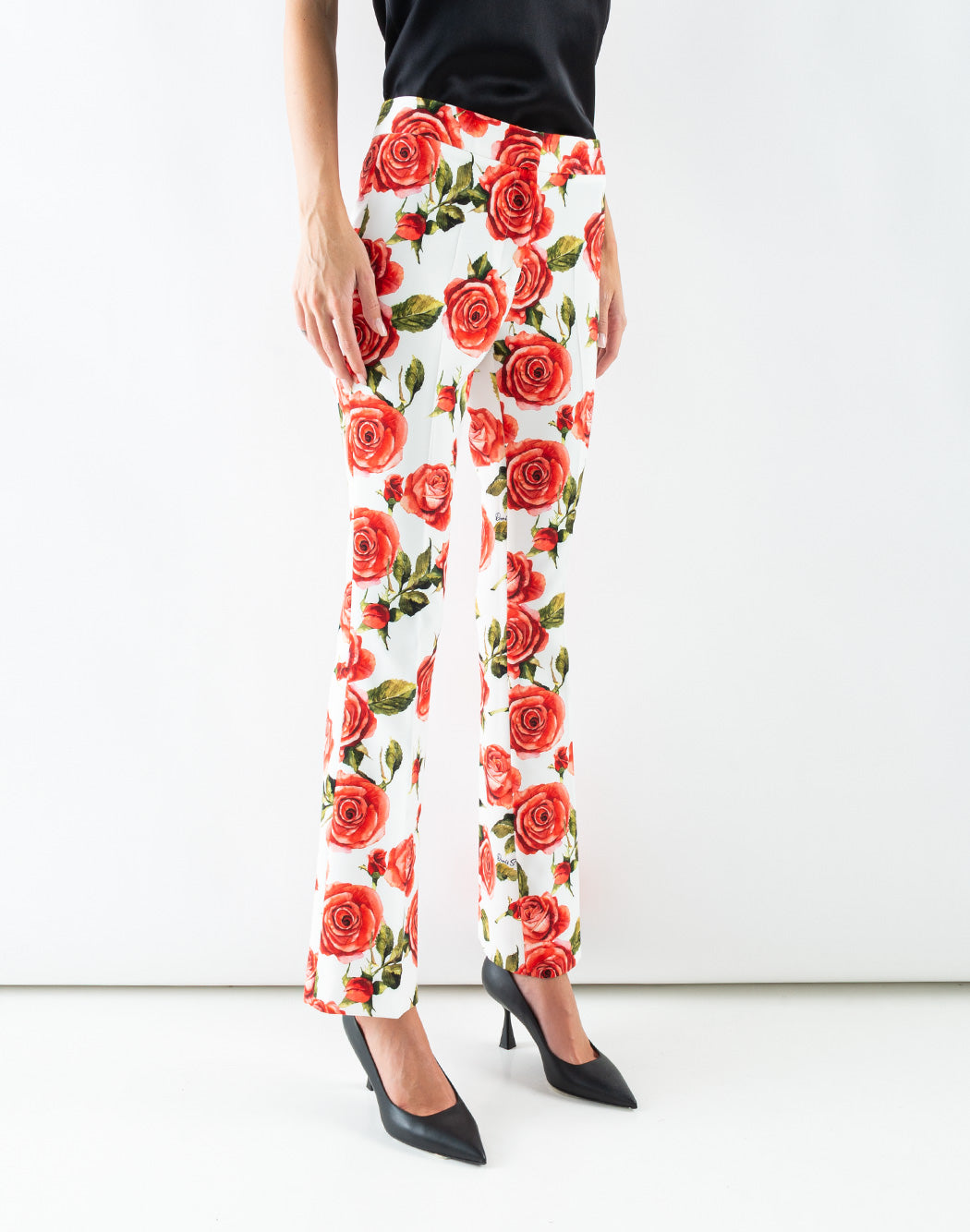 MEGAN2 TROUSERS WITH LARGE ROSE PRINT