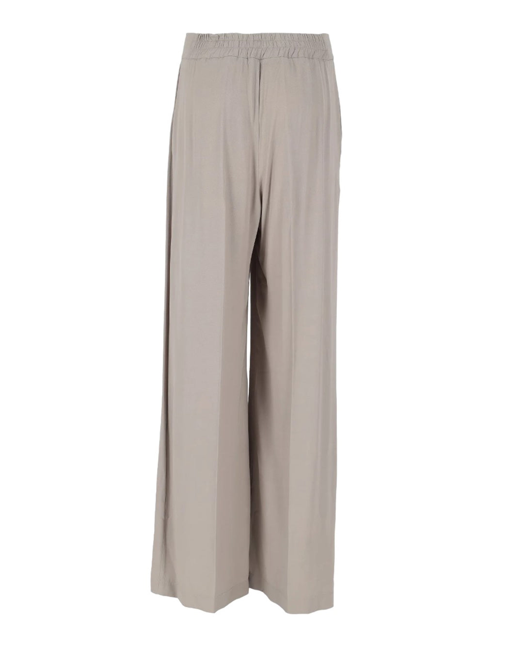 Wide leg trousers with high waist, side pockets, back pocket, zip closure and logo applications.