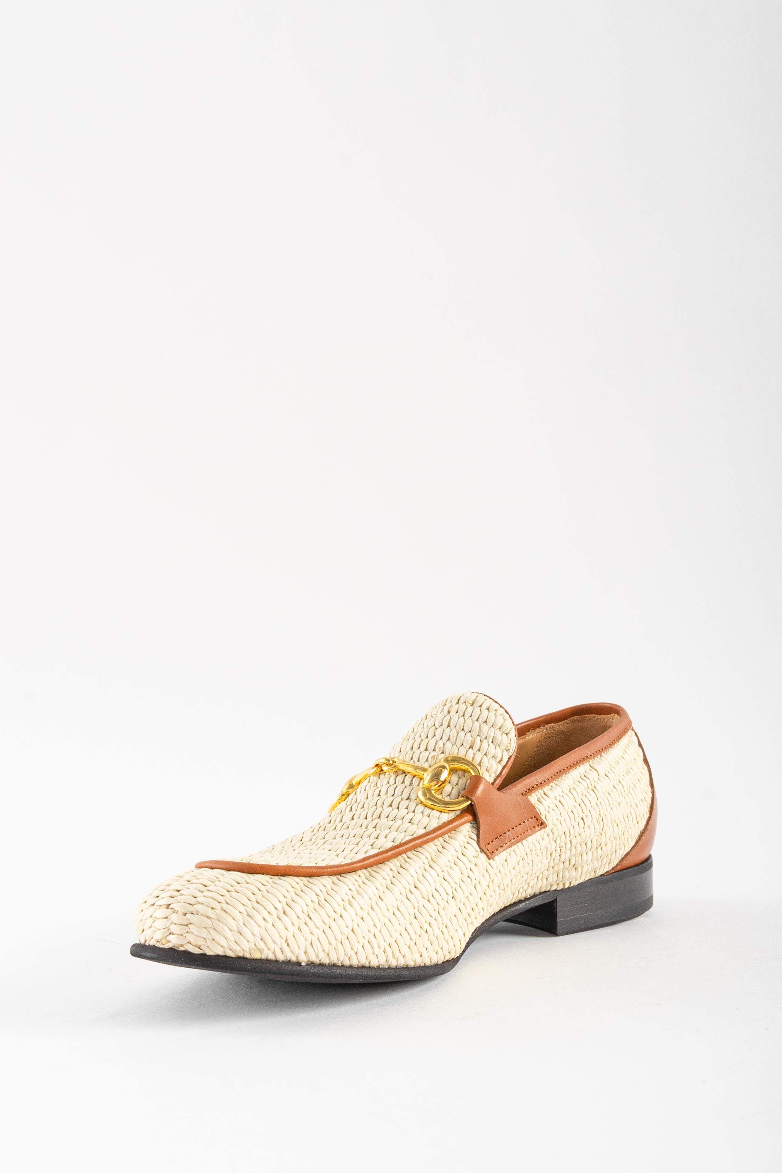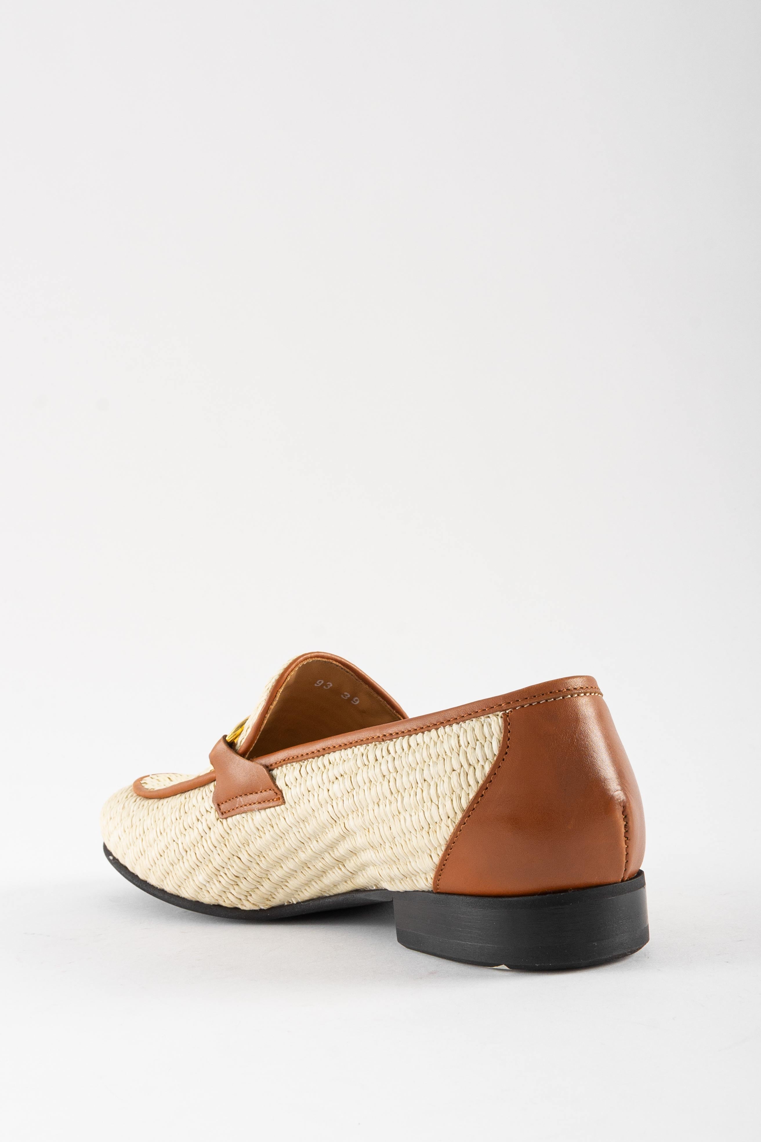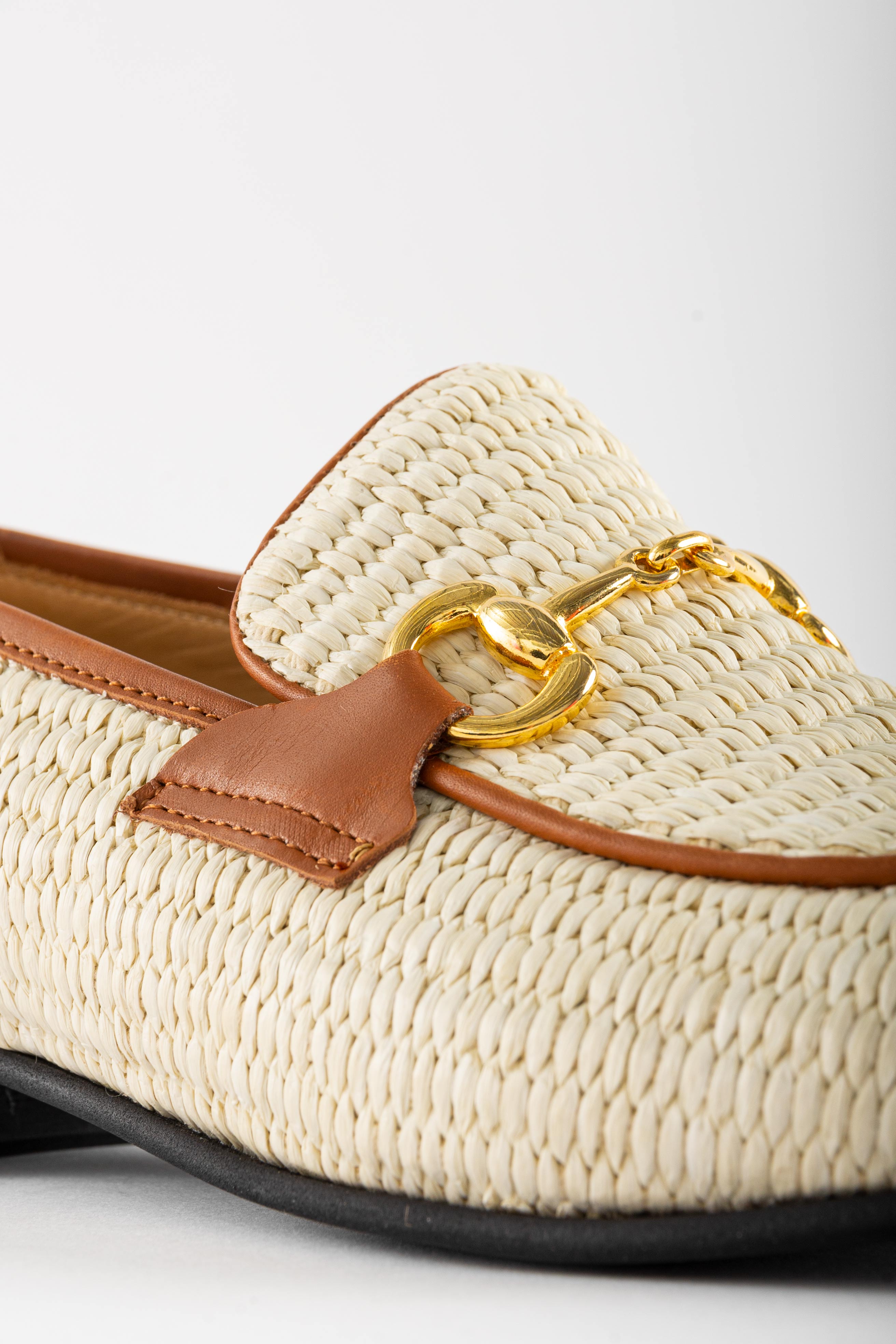 SEBOY'S loafers in solid color raffia with low flat heel, almond toe, leather sole and gold clamp detail on the sole.