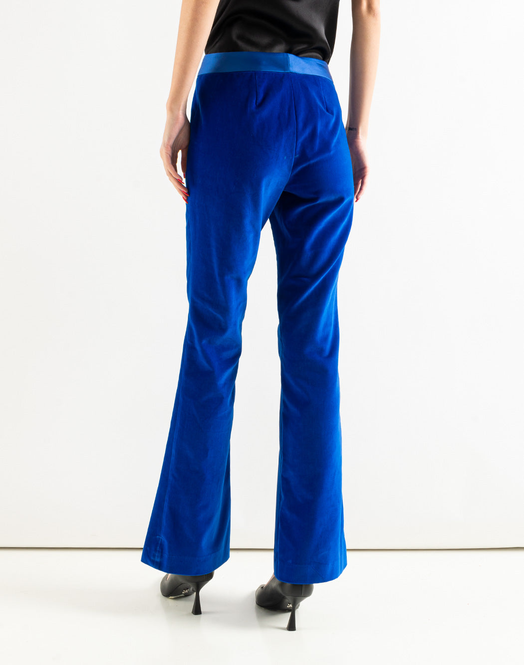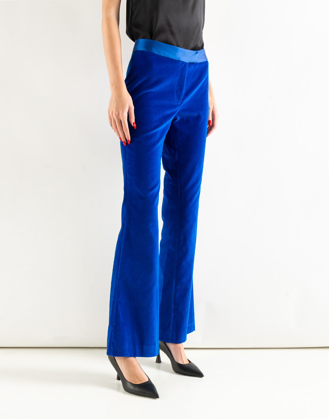 DORIS S flared trousers in velvet and high waisted satin zip and hidden button closure.