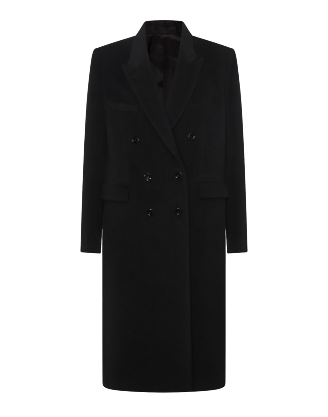 LARDINI double-breasted coat in virgin wool. Side pockets with flap, peak lapels and central vent on the back. Front closure with buttons, and cuffs with buttons.
