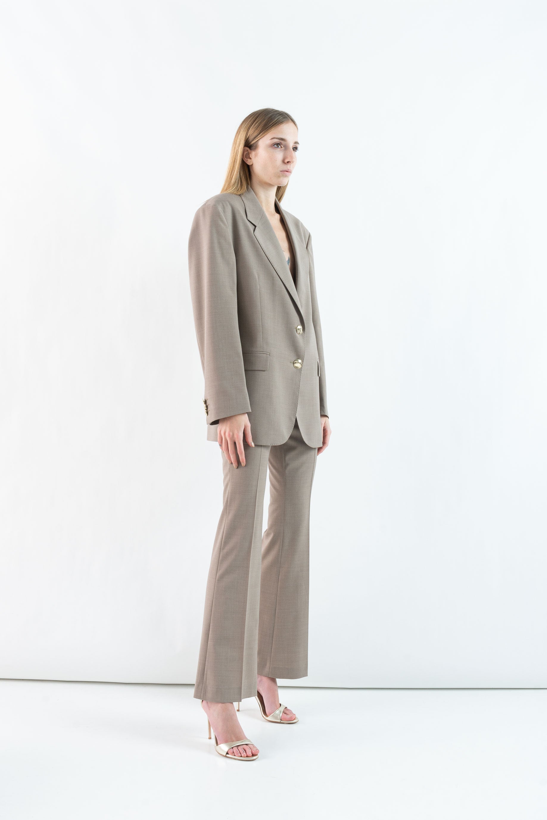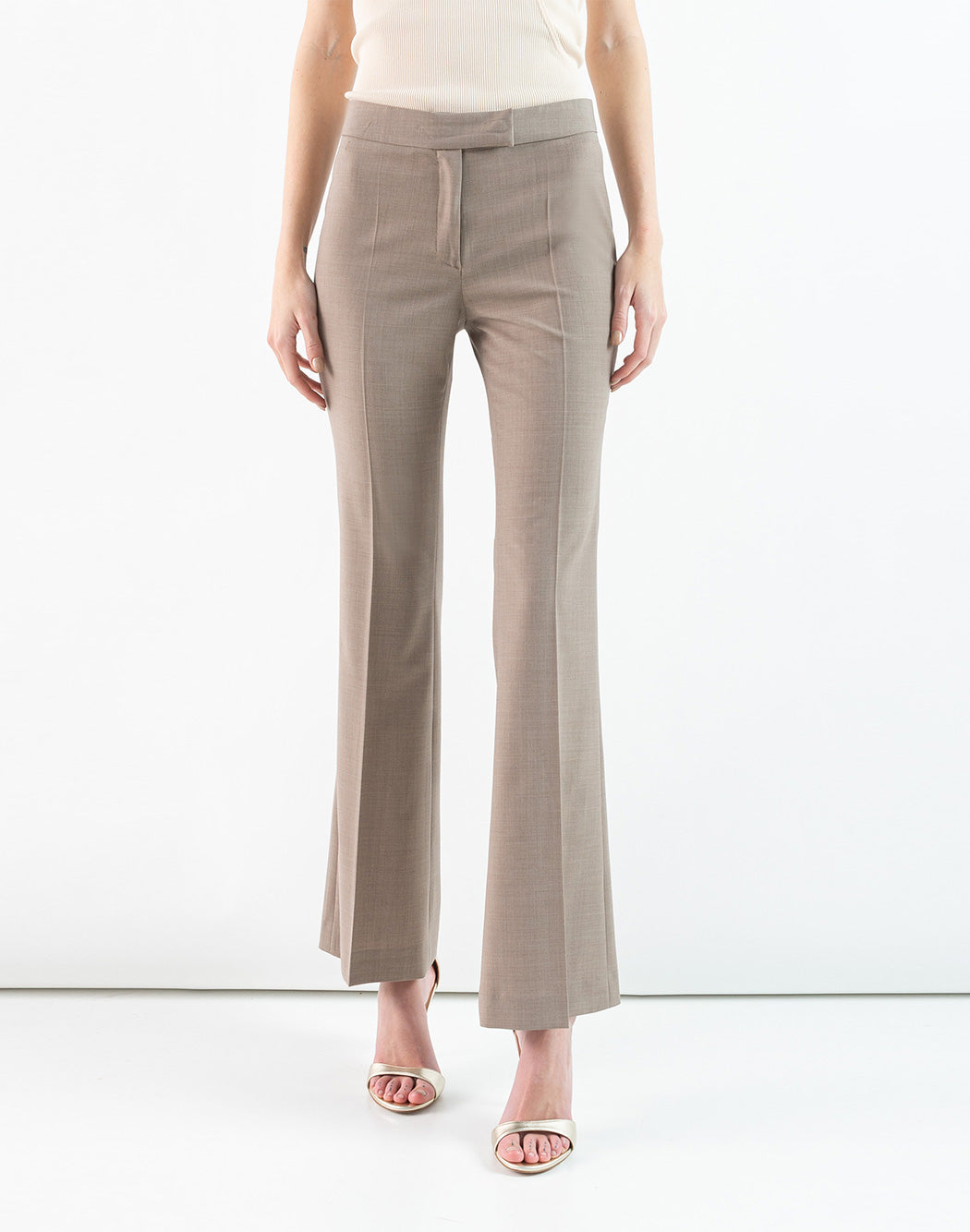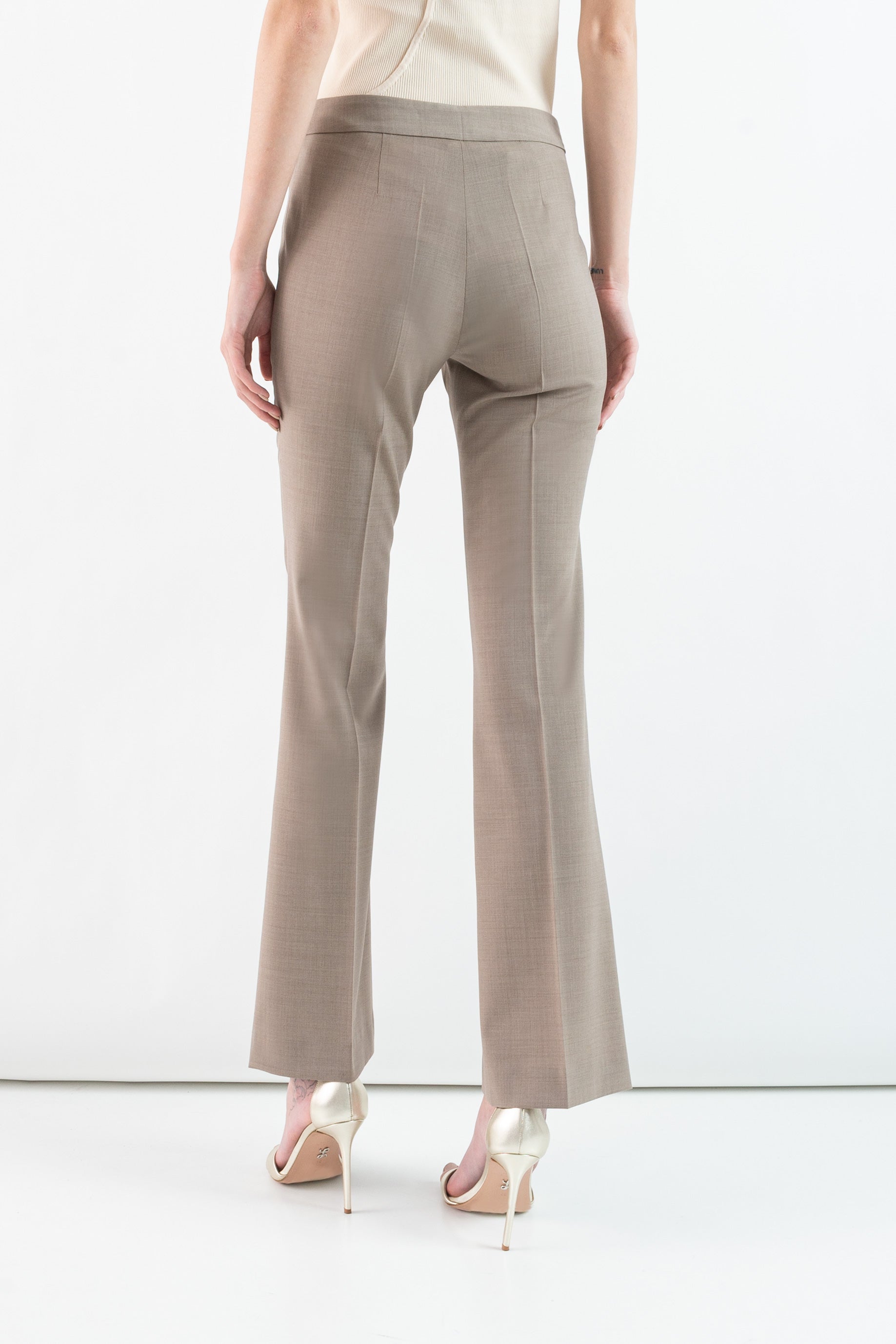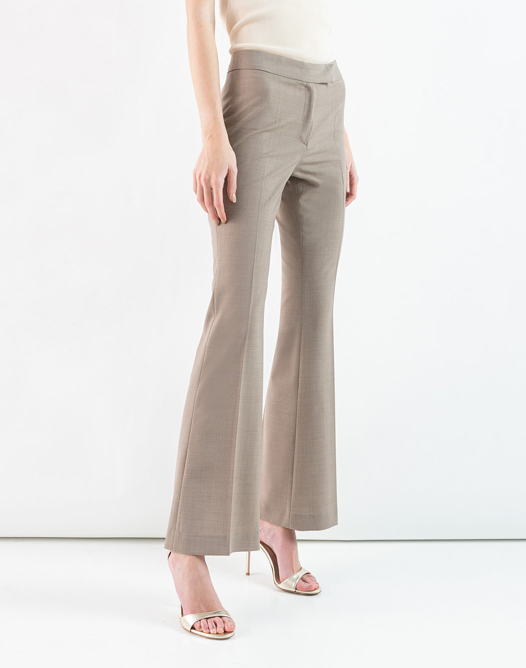 DORIS S flared trousers in wool canvas, concealed zip and hook closure.