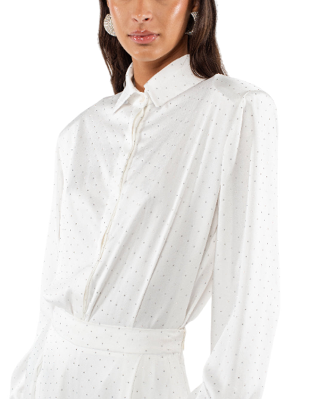 Camisa elegante y luminosa de ACTUALEE, adornada con mini pedrería por toda la superficie que dan un efecto brillante pero refinado.