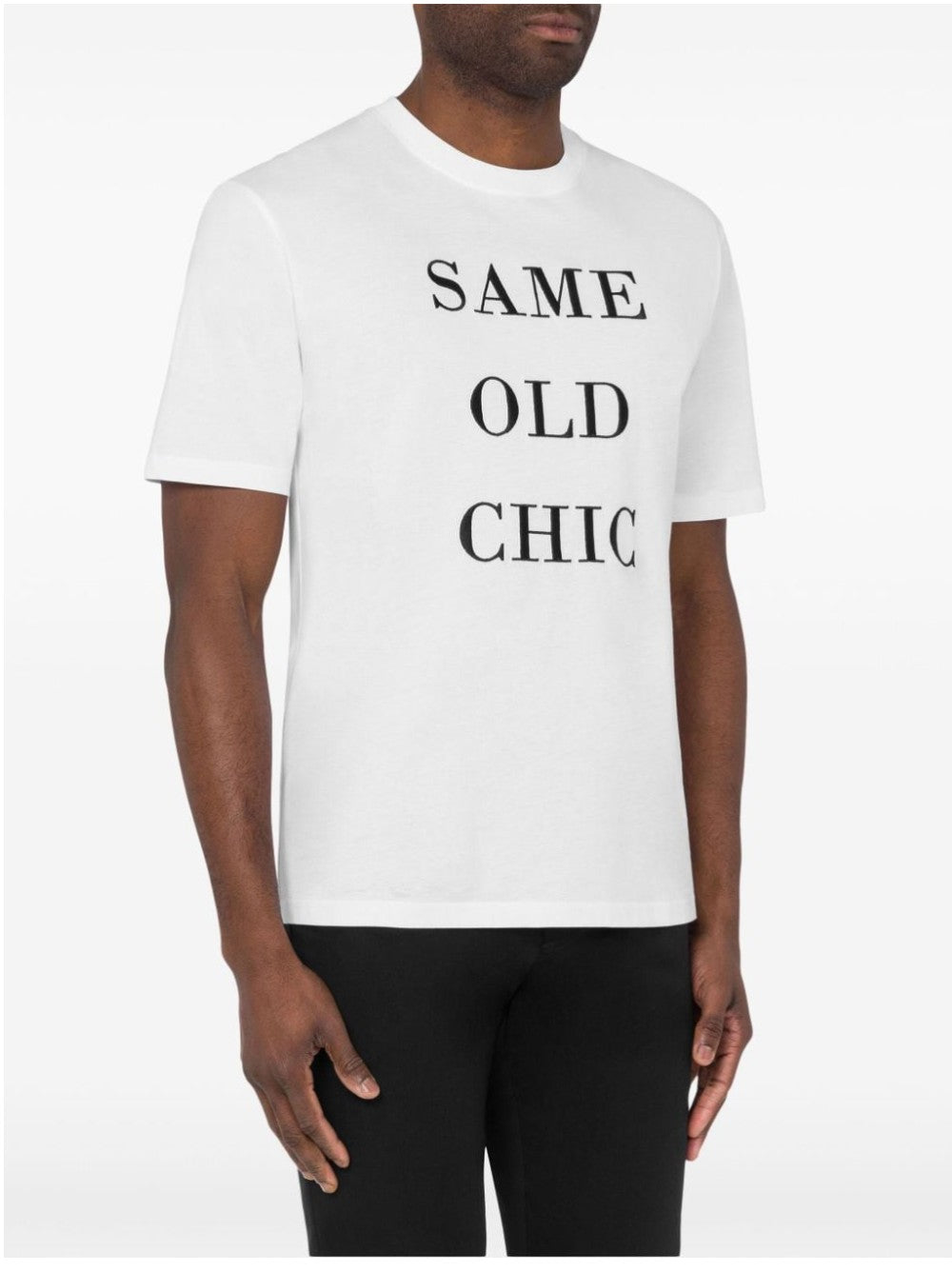 Camiseta de algodón MOSCHINO. Cuello redondo y manga corta con estampado gráfico en la parte delantera.