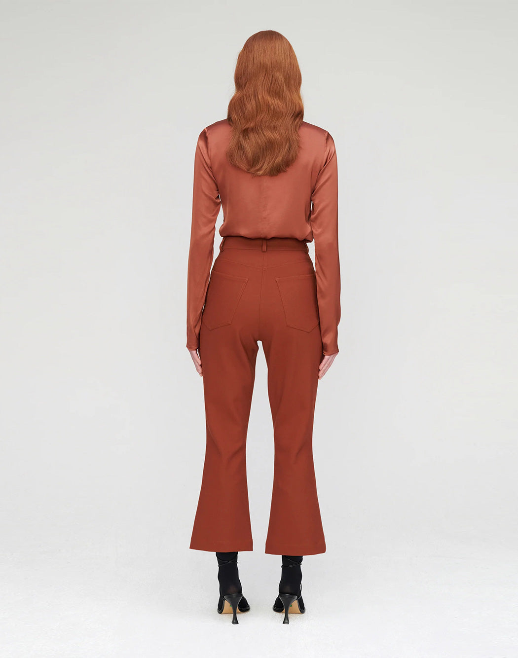 Jersey ROHE en mezcla de viscosa satinada con cuello alto y manga larga. Cierre con cremallera oculta en la espalda.