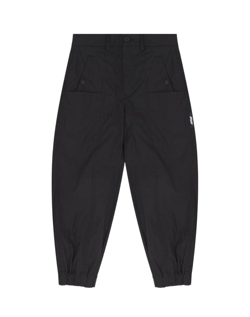 Pantalón práctico y de estilo urbano, con cierre frontal de botón y cremallera, trabillas y diseño funcional. Equipado con dos bolsillos laterales ribeteados y dos bolsillos de parche delanteros, es perfecto para looks informales con carácter fuerte.