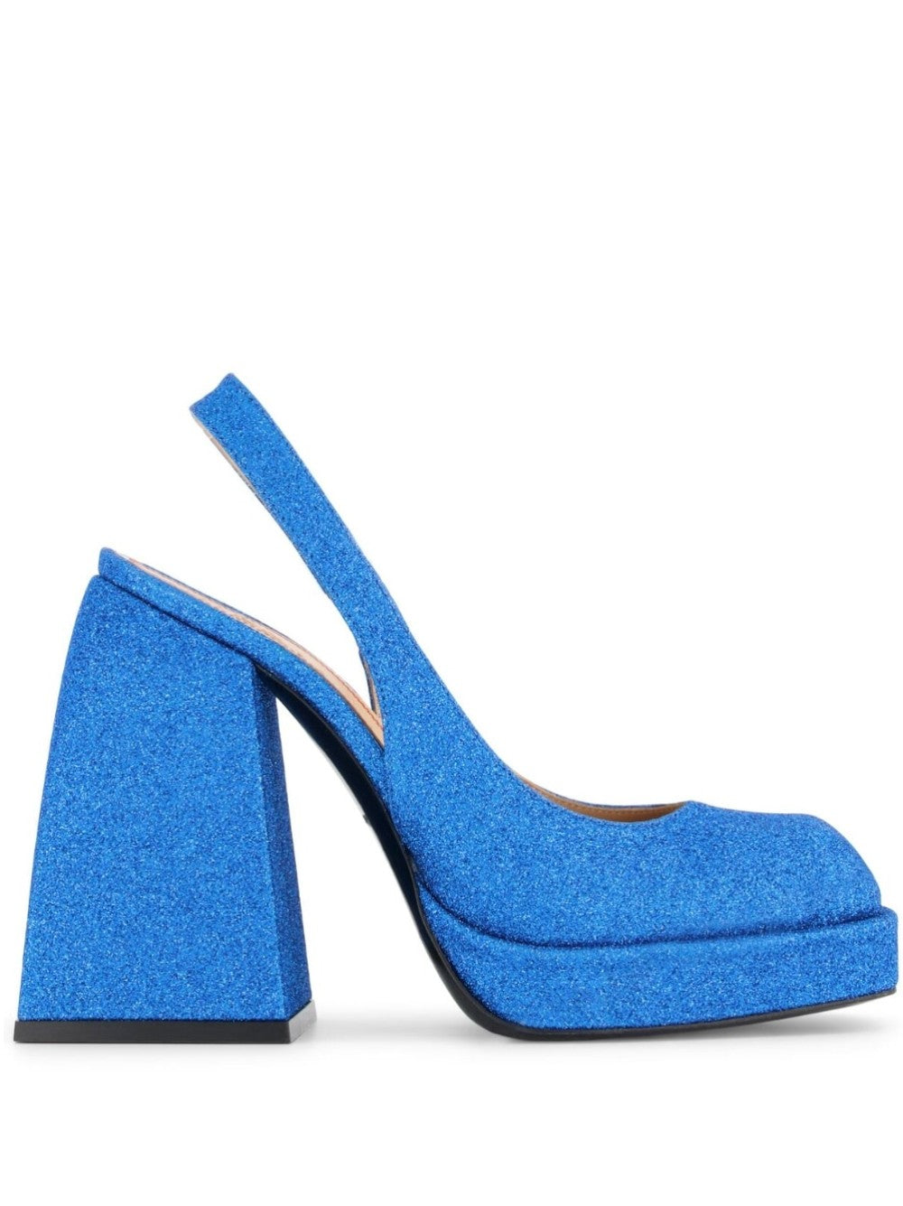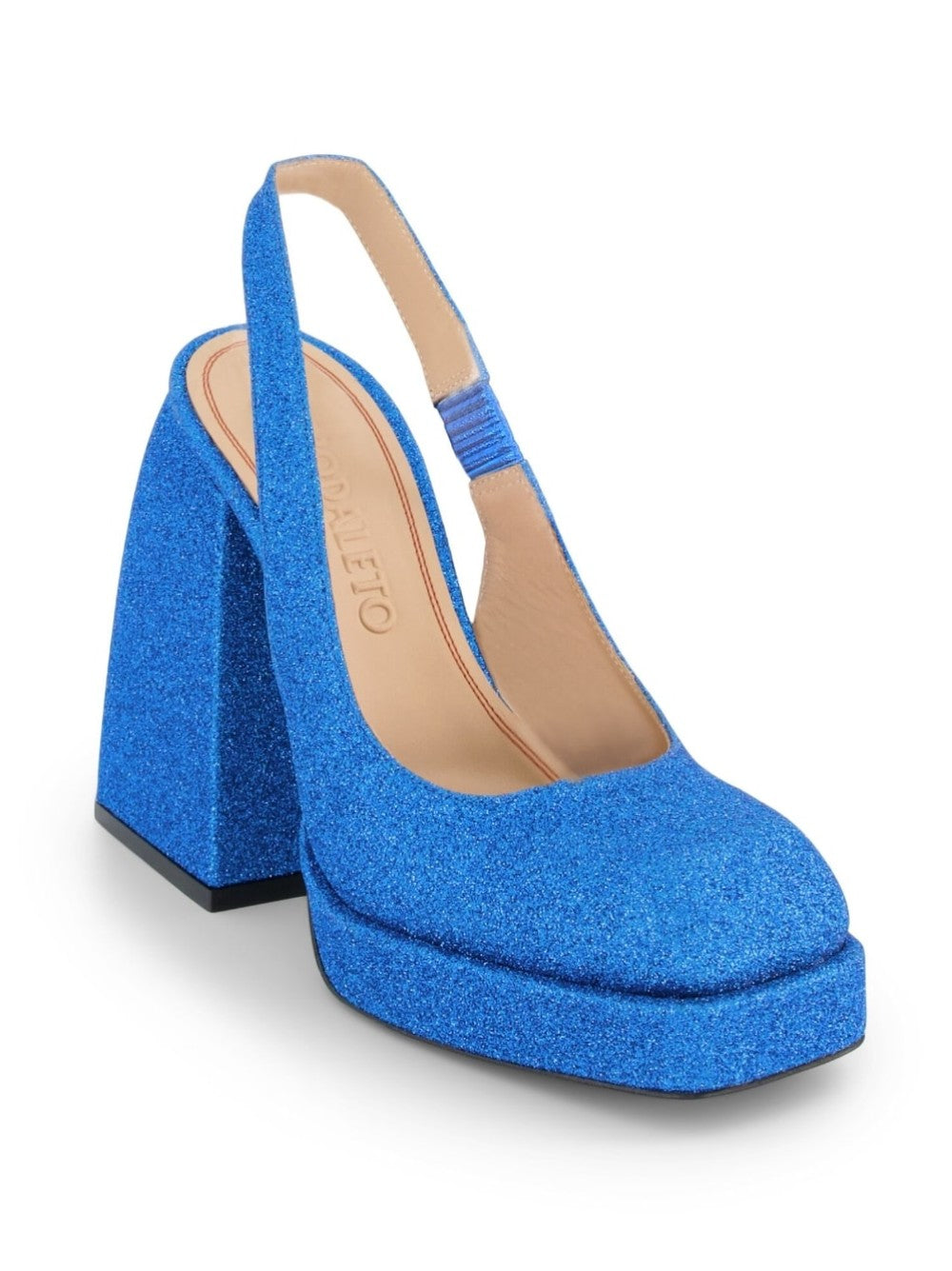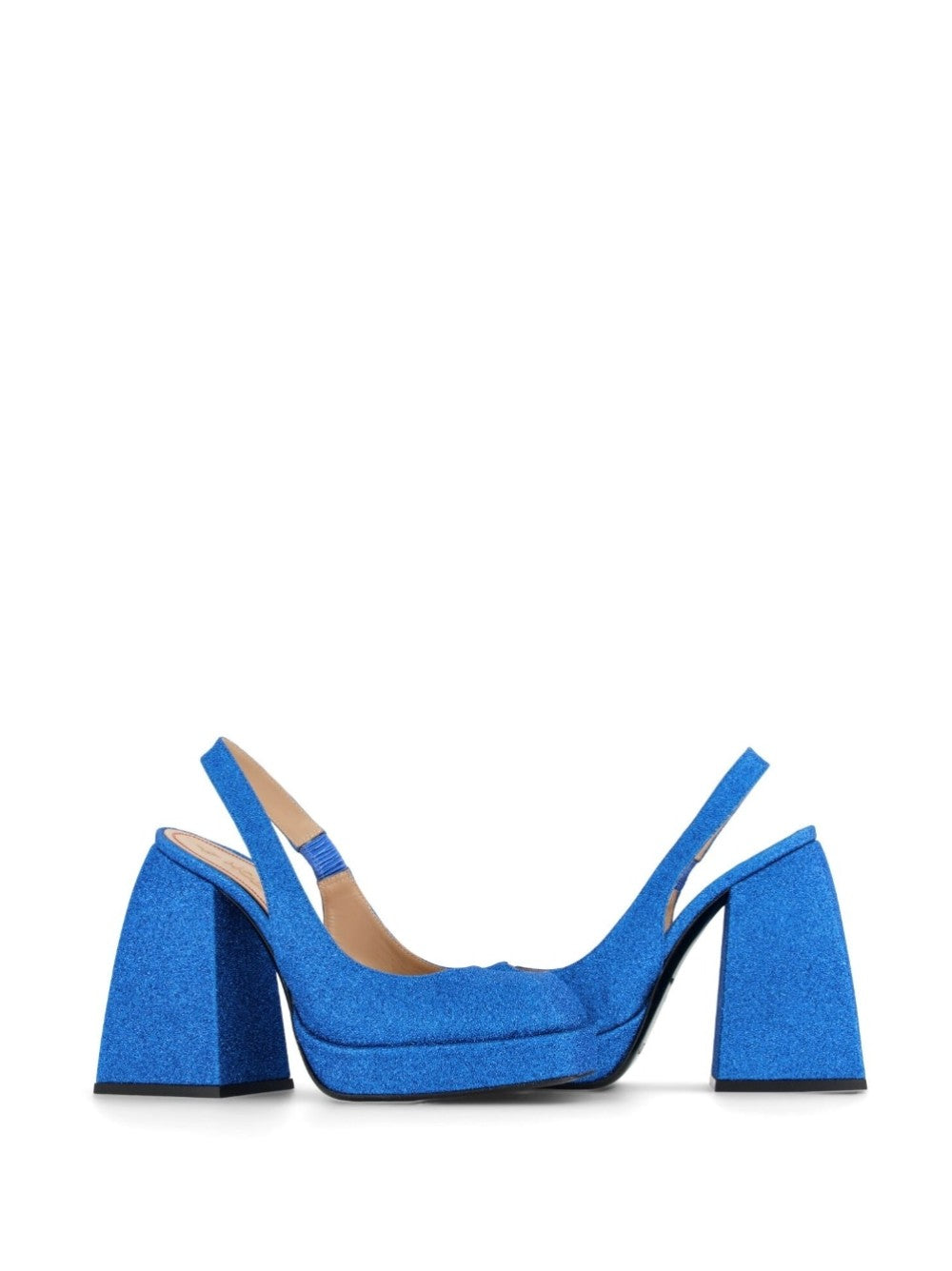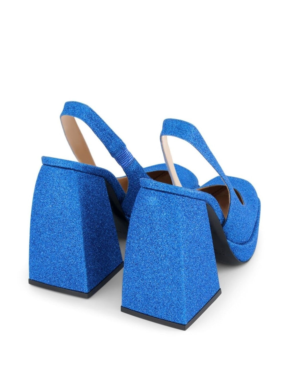 Sandalias NODALETO con all over de purpurina, tacón cuadrado y acampanado. Cierre de hebilla. Suela de cuero y puntera cuadrada.