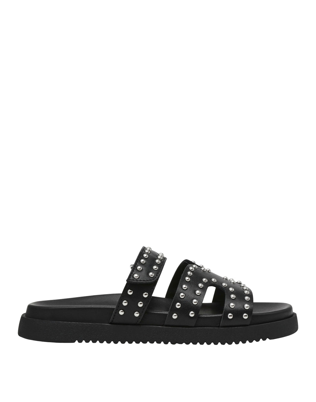 La sandalia Steve Madden Missile-S Black Studs es un modelo slip-on con un diseño atrevido y contemporáneo, ideal para quienes quieren darle un toque atrevido a su outfit de verano.