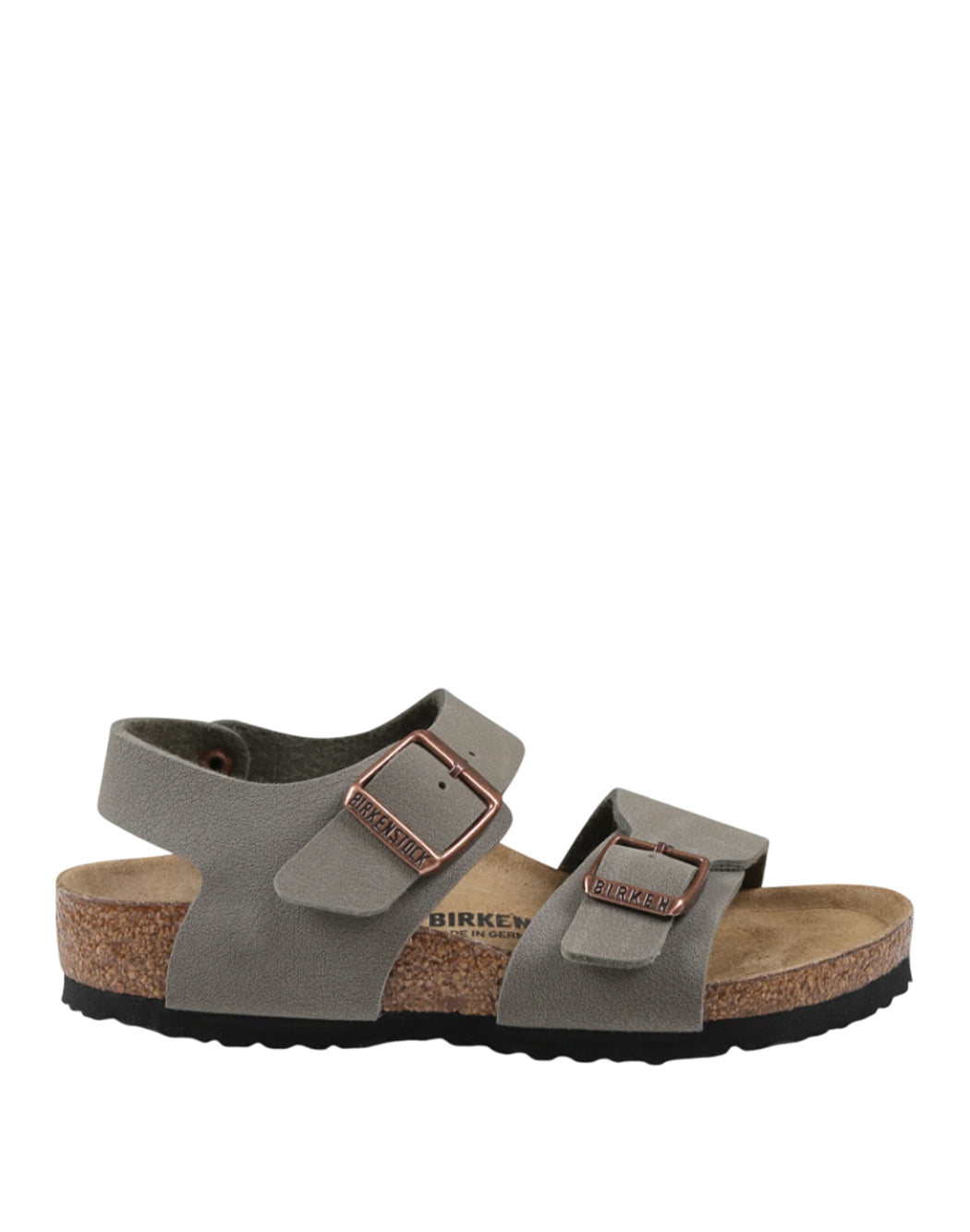Sandalias marrones con suela de goma, plantilla anatómica, dos tiras con hebillas ajustables en la parte delantera y tira en el talón. Están decoradas con un logo grabado en el lateral.