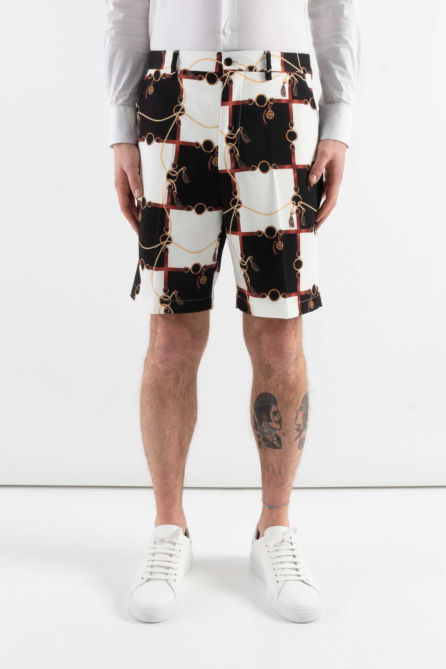 Pantalón corto COR SINE LABE DOLI con estampado integral de cuadros y bolsillos laterales de ribete. Cierre con botón y cremallera.