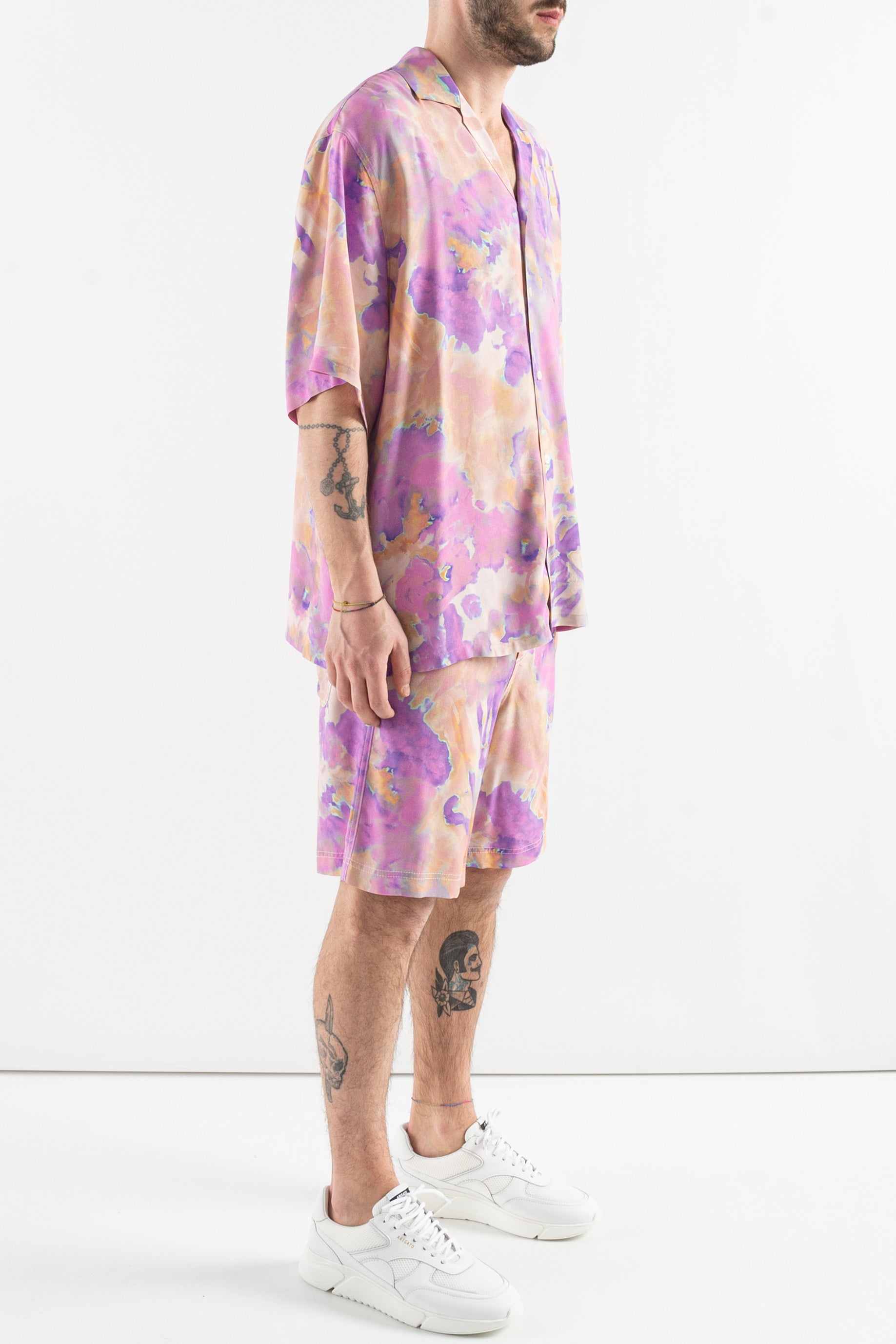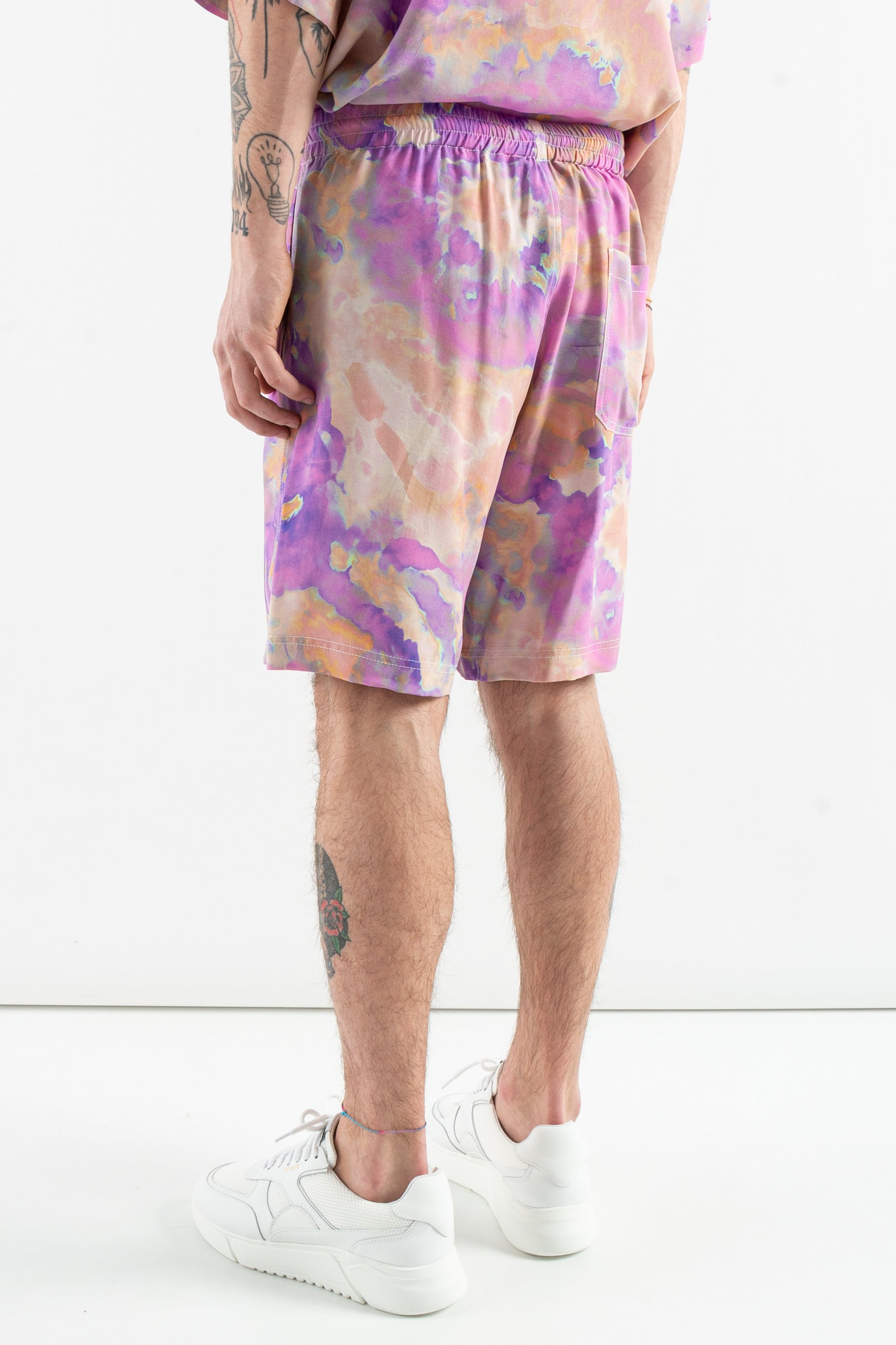 Pantalón corto MSGM en viscosa con estampado tie-dye, bolsillo de parche en la espalda y cordón de ajuste en la cintura.