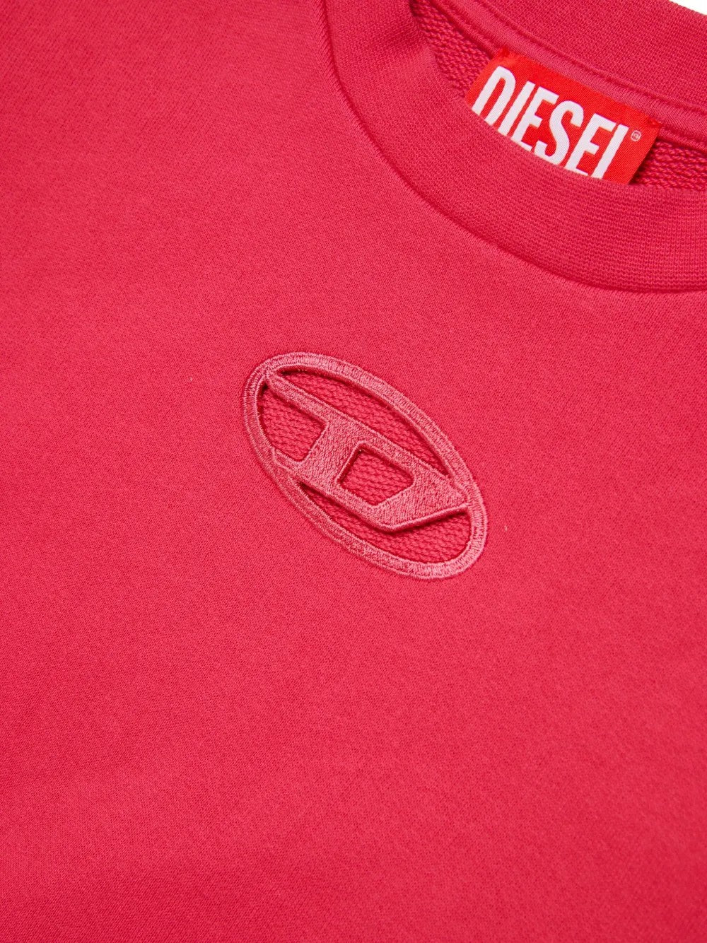 La sudadera de algodón blanca de Diesel Kids presenta el logo Oval D bordado en el pecho, con cuello redondo, mangas largas y hombros caídos para un ajuste cómodo. Bajo y puños de canalé, bajo recto y forro de tejido técnico completan un diseño informal y moderno.