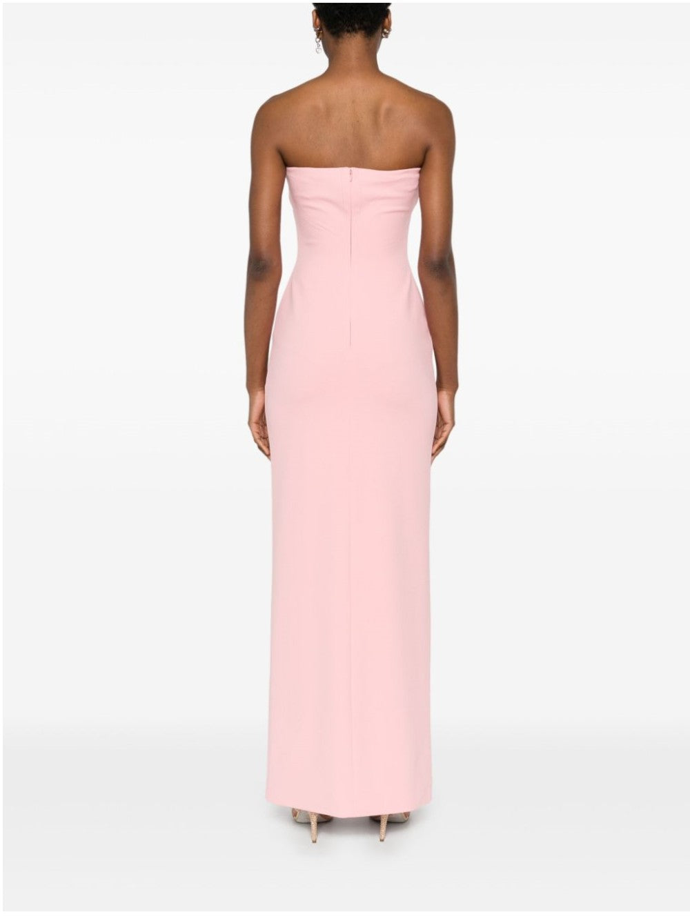 Vestido largo SOLACE LONDON en crepe sin tirantes, con abertura en la parte delantera. Cierre con cremallera oculta en la espalda.