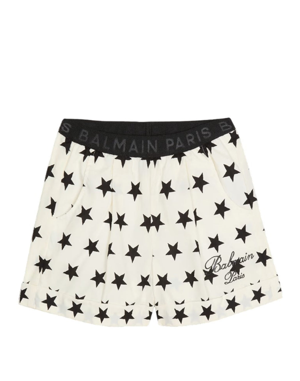 Le short étoile Balmain offre une coupe courte et décontractée, parfaite pour un look estival tendance. Orné du logo emblématique Balmain, ce short présente un imprimé étoiles contrasté all-over qui ajoute une touche d'originalité et de style. Le design est complété par deux poches plaquées latérales, idéales pour ranger de petits objets ou simplement pour ajouter un élément pratique au vêtement. Ce short est une option polyvalente et chic pour toute garde-robe estivale.
