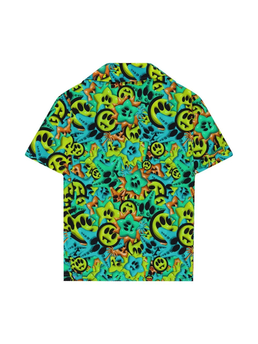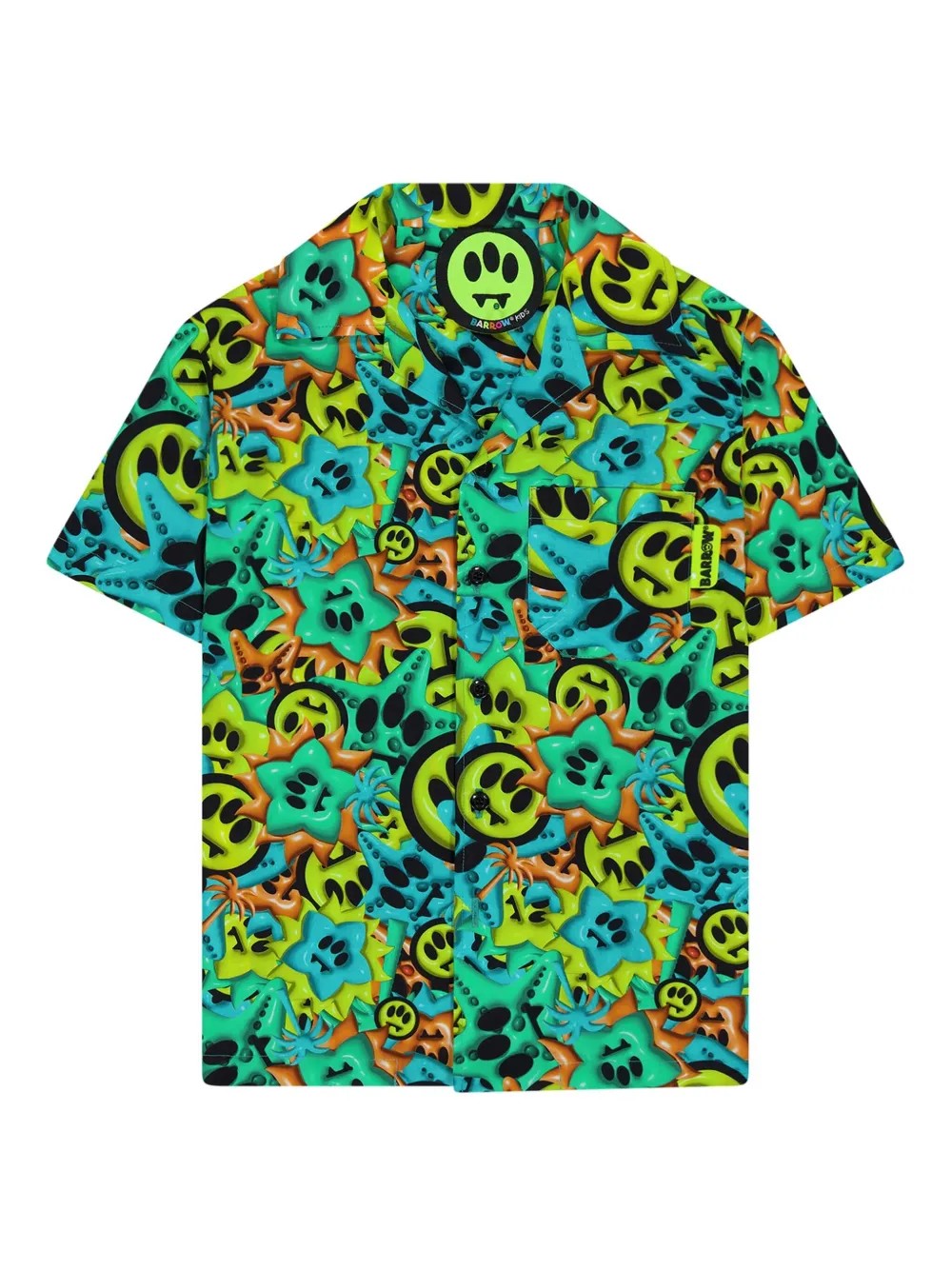 La chemise Barrow Kids en turquoise vert-bleu a un design frais et vivant. Il se caractérise par une fermeture frontale avec boutons et des manches courtes, parfaites pour un look décontracté et coloré pendant l'été.