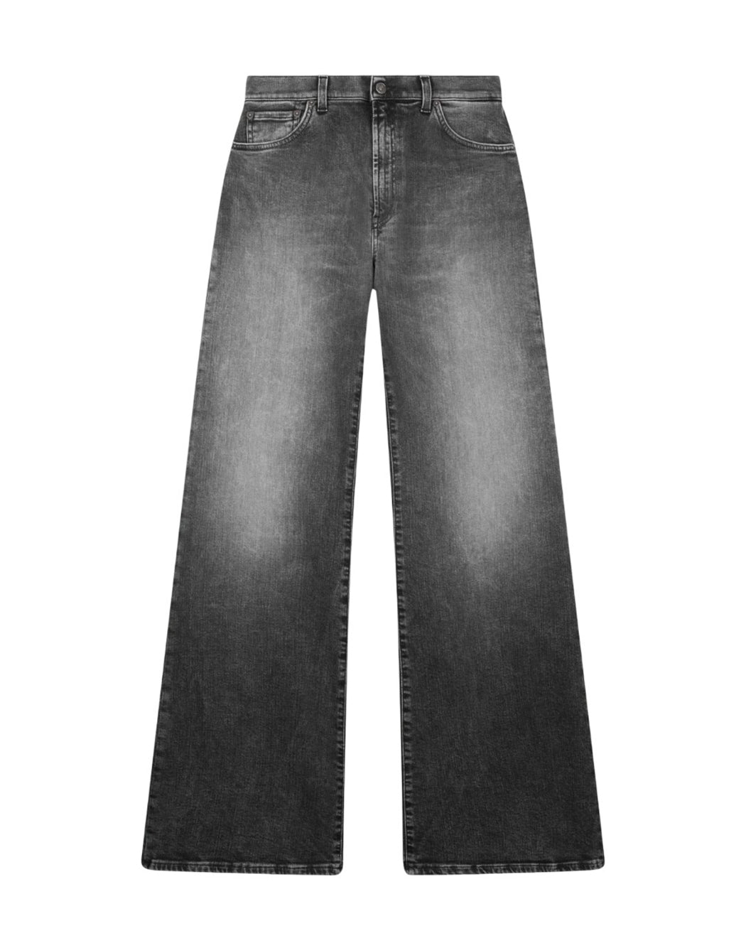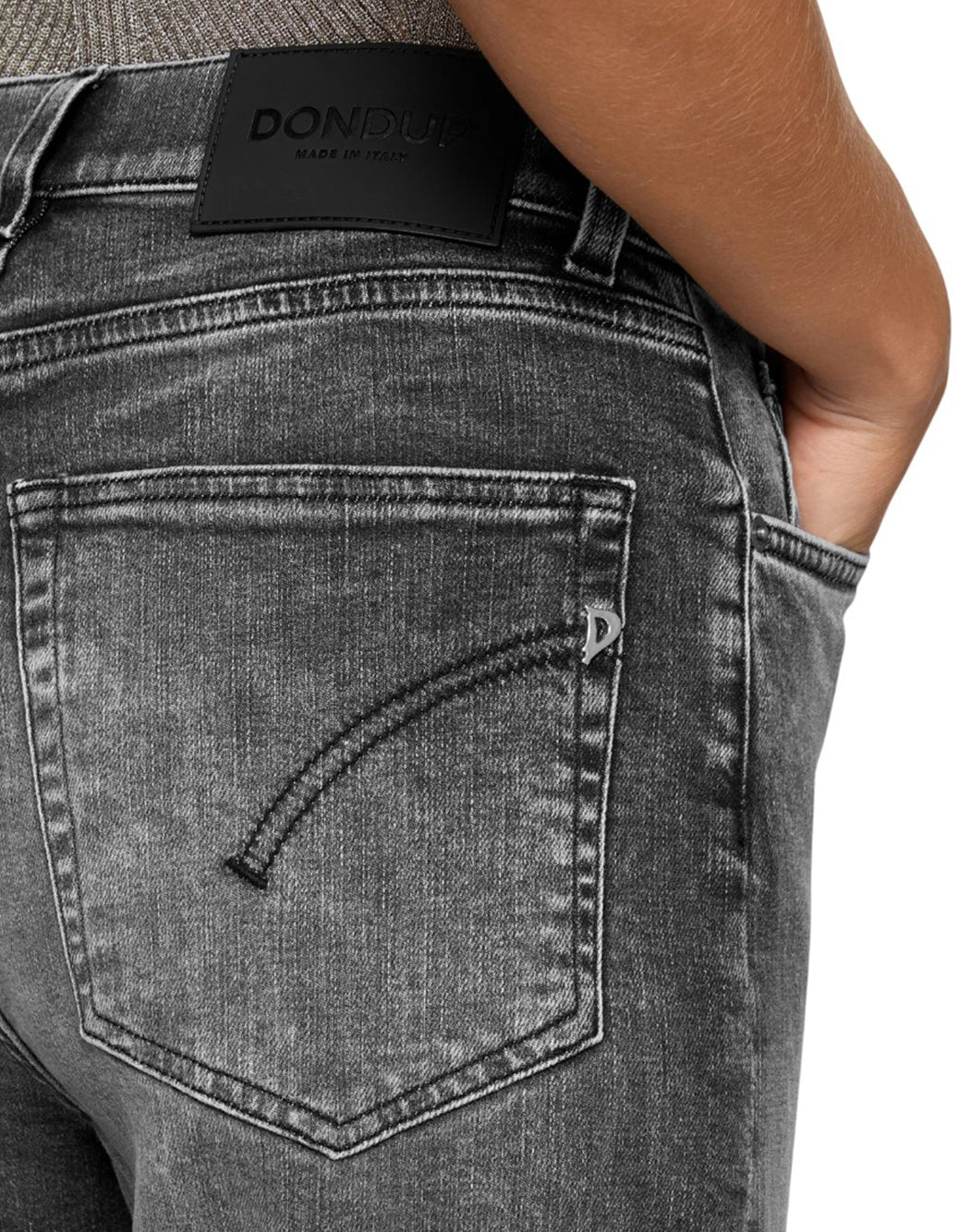 Jean Amber de Dondup cinq poches, coupe large avec jambe large et taille régulière. Confectionné en denim stretch noir avec un délavage gris moyen épuré, il allie confort et style moderne.