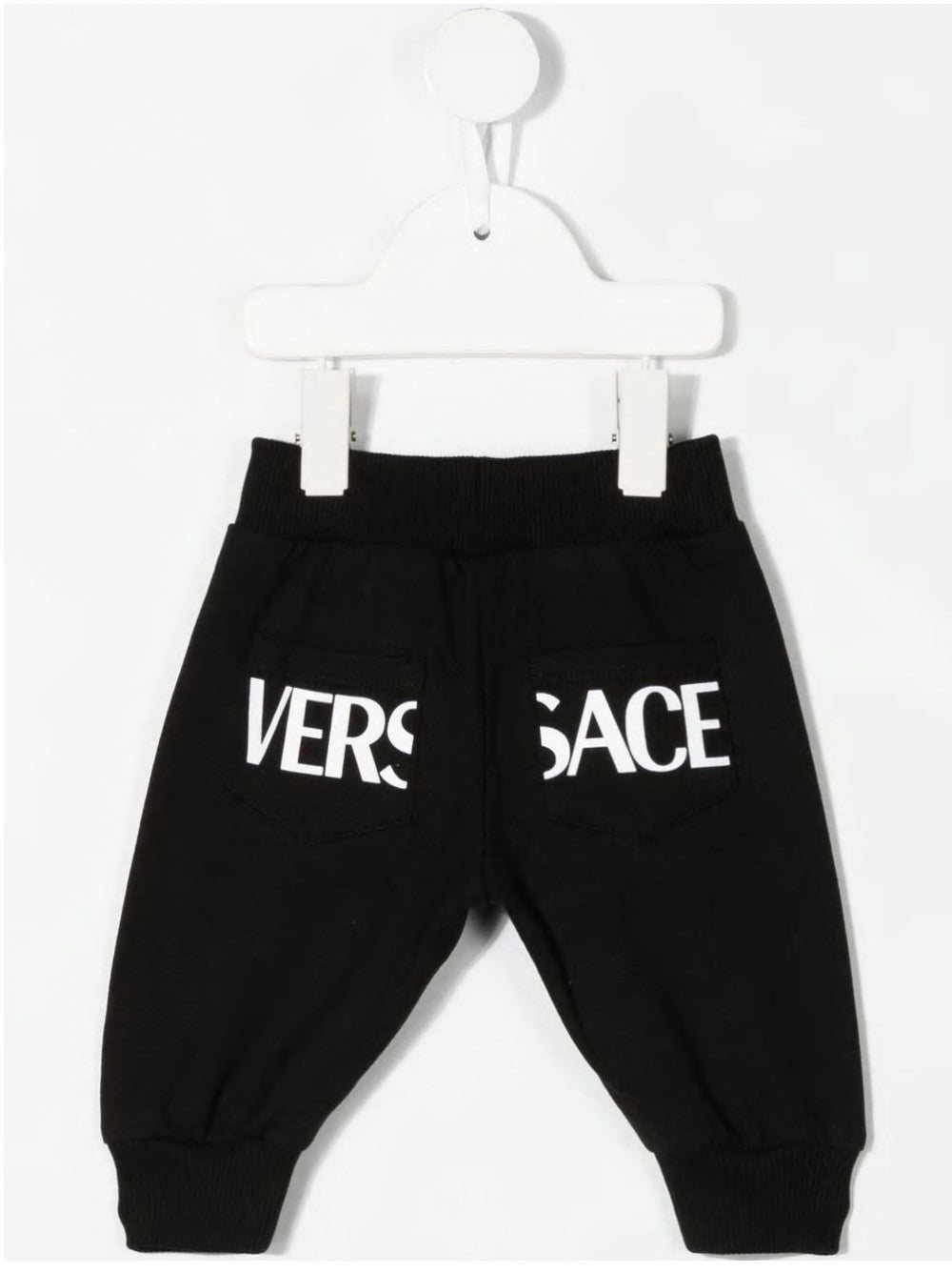 Pantalon de sport VERSACE en coton mélangé avec logo imprimé contrasté et cordon de serrage à la taille.