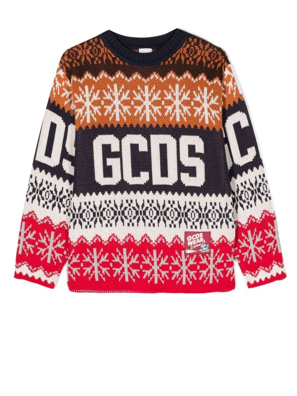 Pull en coton GCDS avec logo brodé multi-motifs et contrasté sur la poitrine, col rond et manches longues.