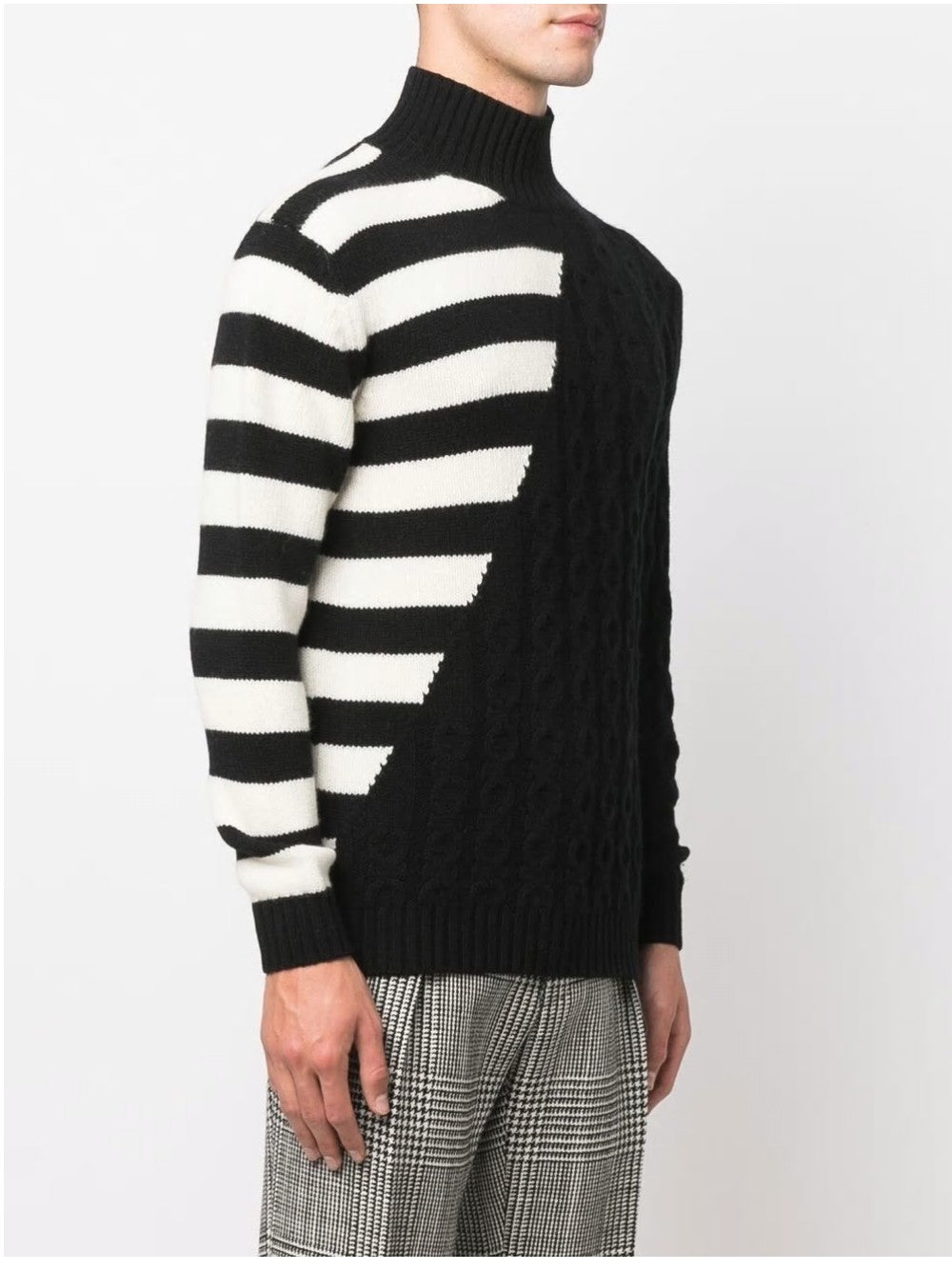 Pull TAGLIATORE en laine multi-motifs, col montant côtelé et manches longues.