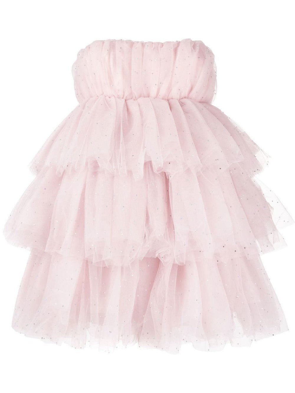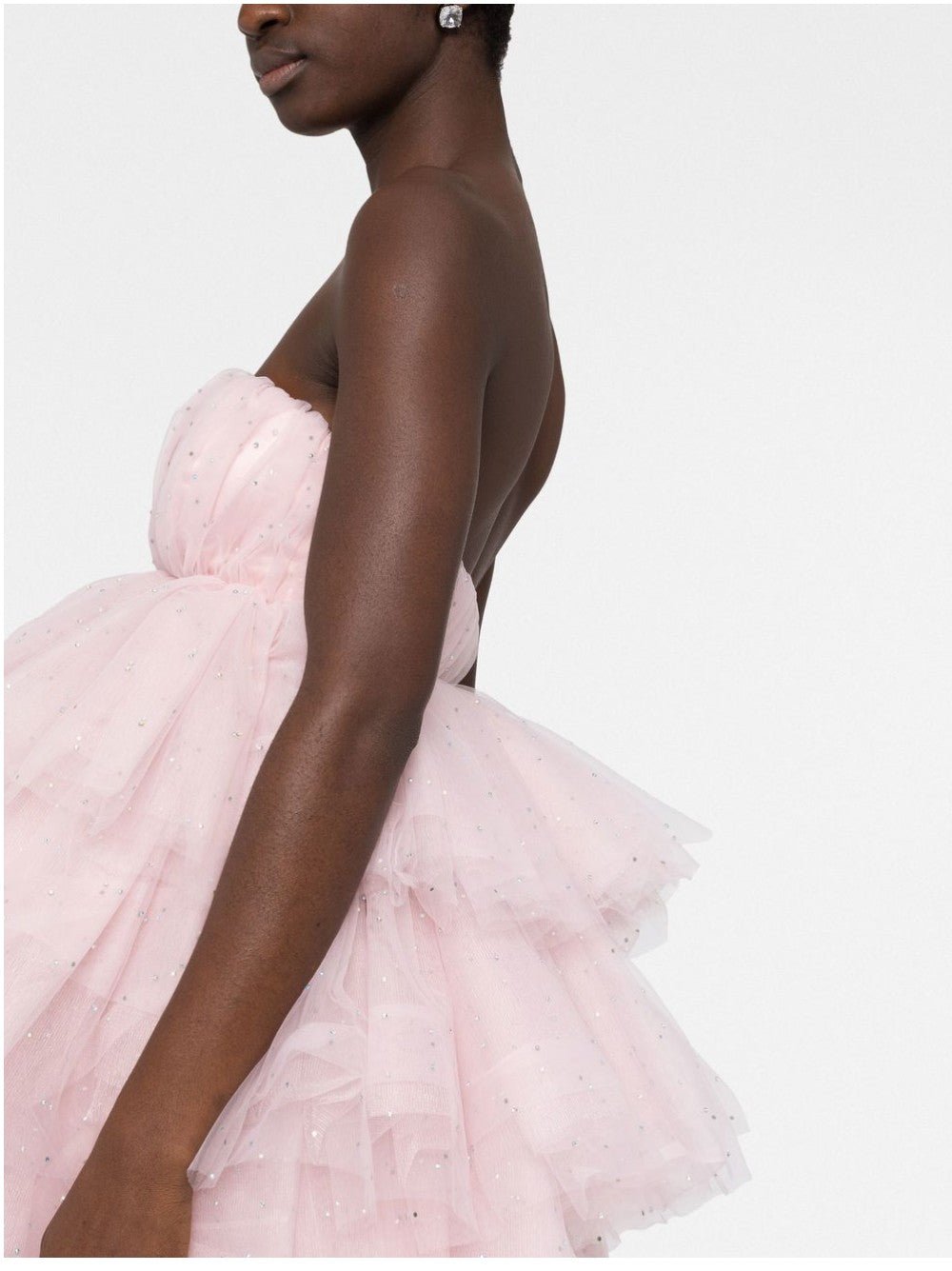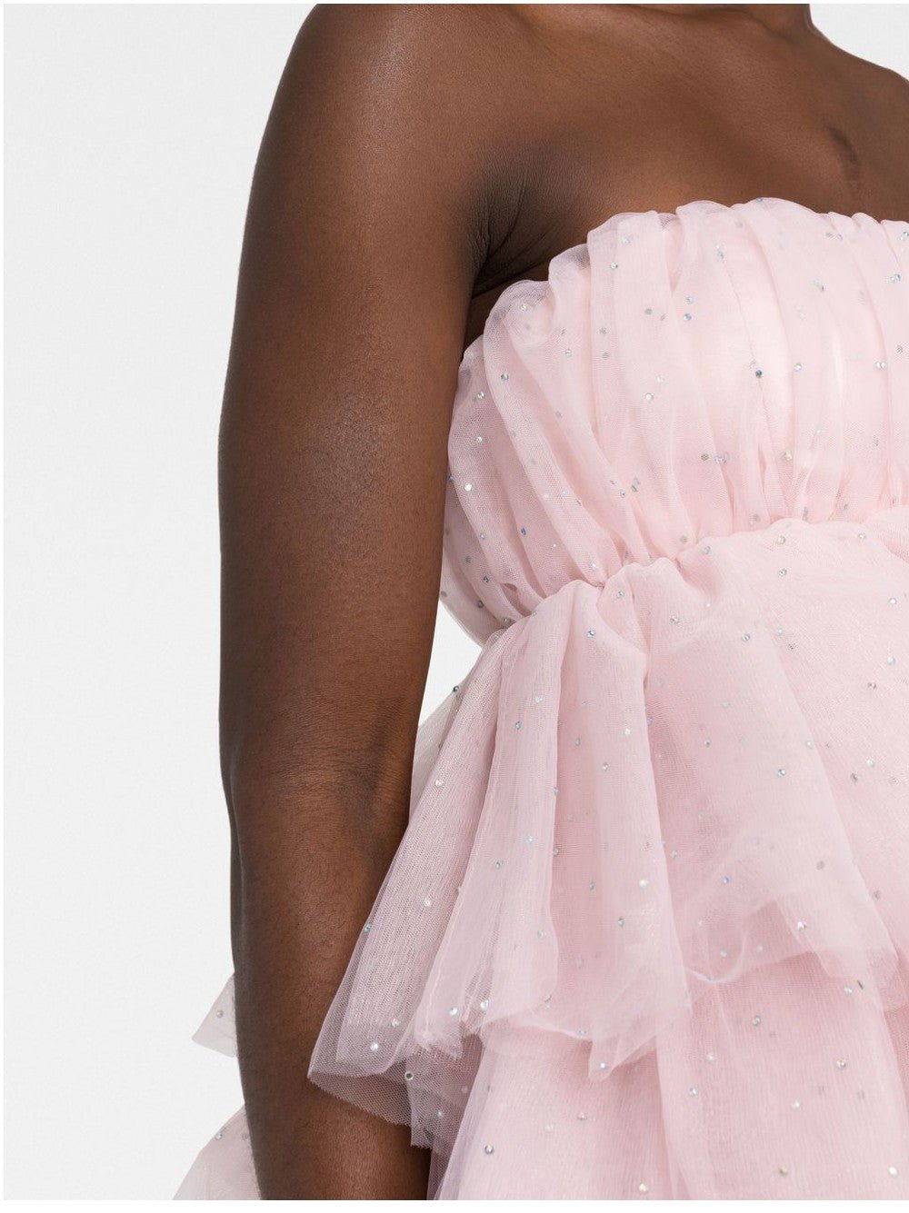 Robe courte ROTATE en tulle avec décor de cristaux, bustier, fermeture dos avec nœud.