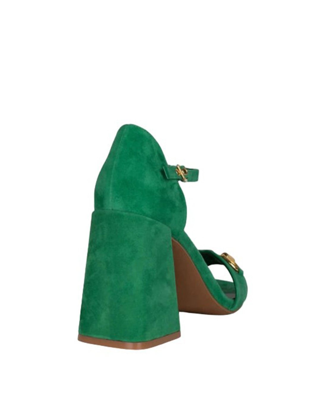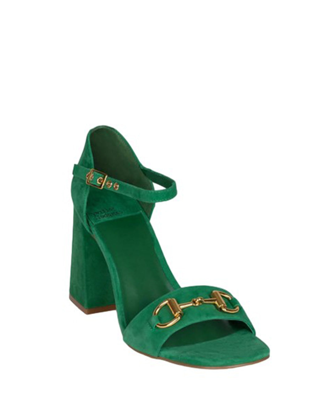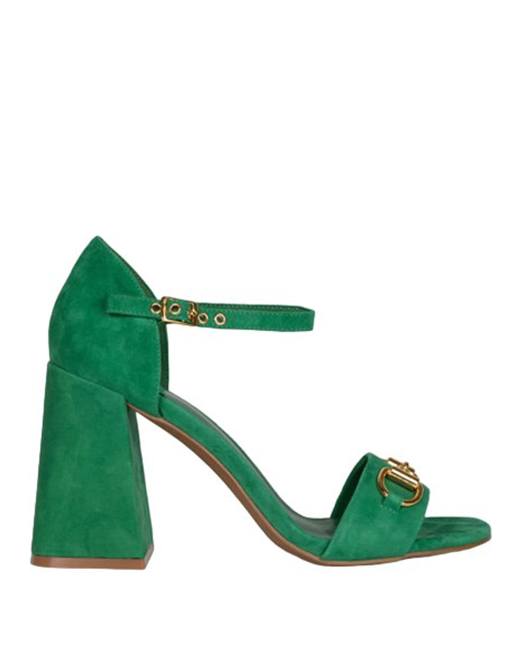 Sandales à talons JEFFREY CAMPBELL en daim avec détails sur le devant. Talon carré et évasé. Bride cheville avec boucle.