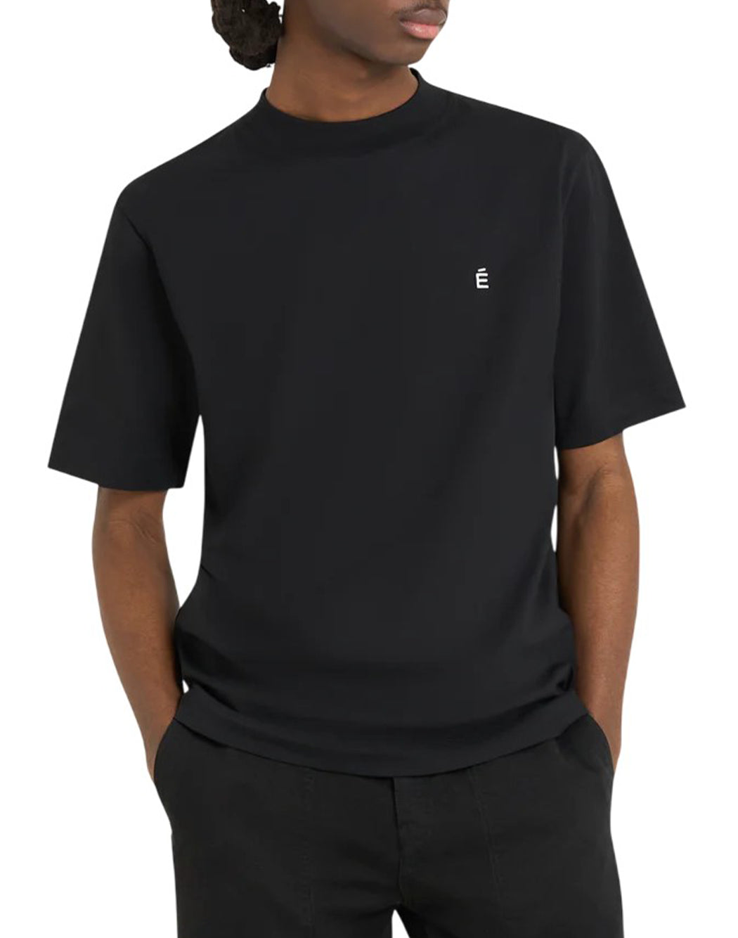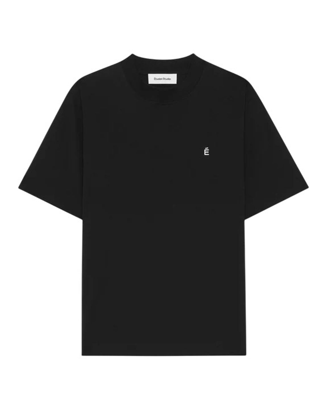 T-shirt Études noir avec logo brodé sur la poitrine, col rond classique et manches courtes. Essentiel et contemporain, idéal pour un look minimal et raffiné.