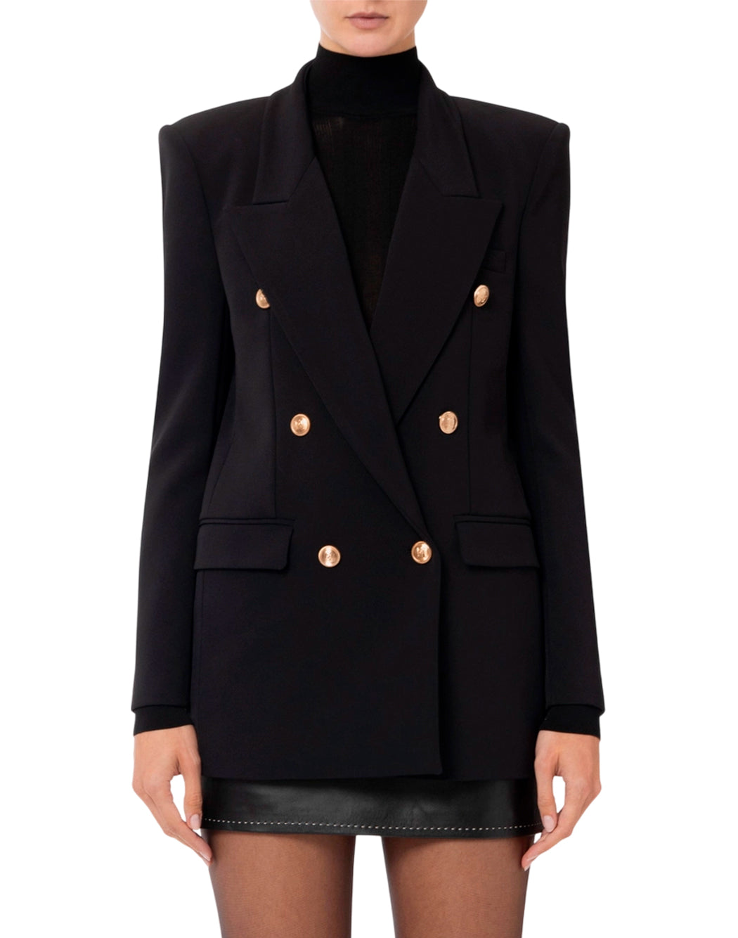 Veste croisée en crêpe stretch. Le blazer a des revers en pointe, des manches longues et des rabats appliqués. Touches de lumière avec boutons siglés en métal doré. Coupe surdimensionnée. Fait partie de la collection Essential, pour construire la garde-robe parfaite.