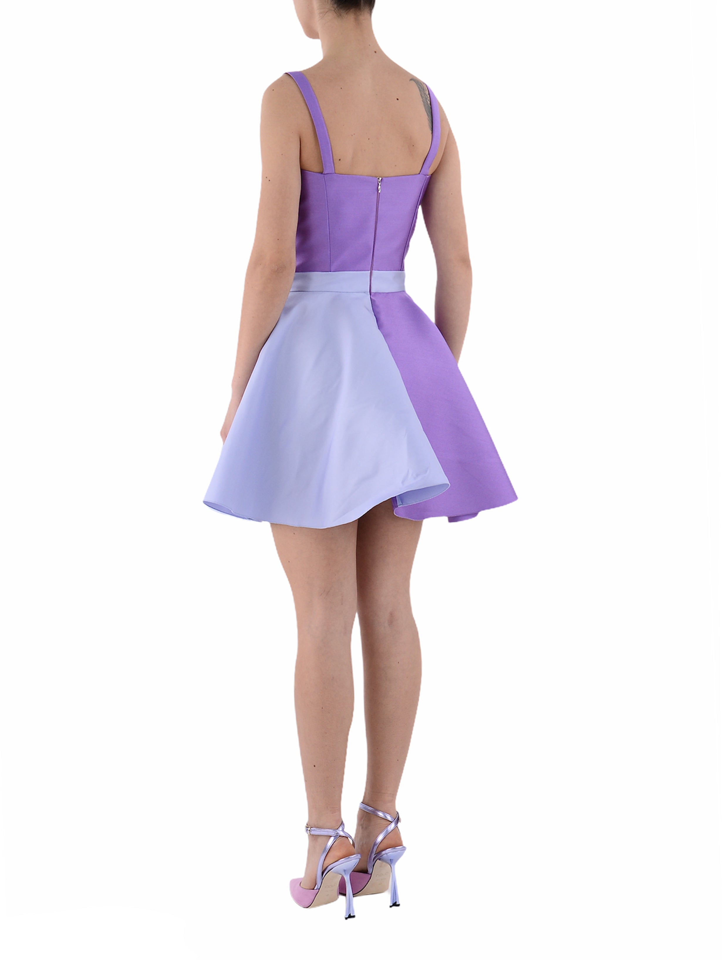 Abito DORIS S CHIARA Femminilità allo stato puro, il modello presenta corpetto a bustier con bretelle e ampia gonna a pieghe. Chiusura sul retro con zip nascosta, lunghezza sopra il ginocchio e gonna bicolore.
