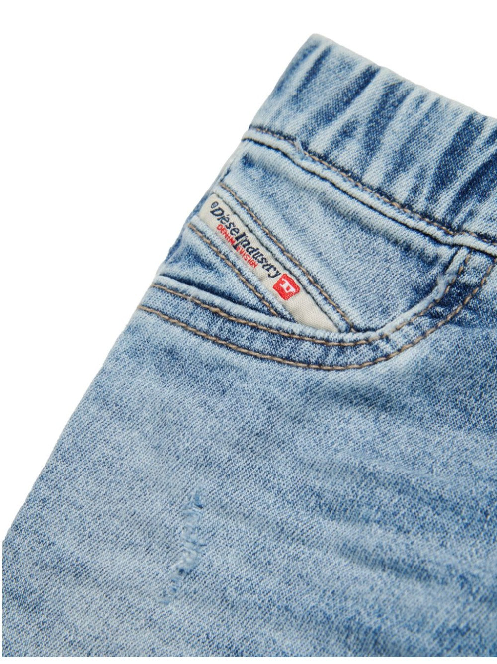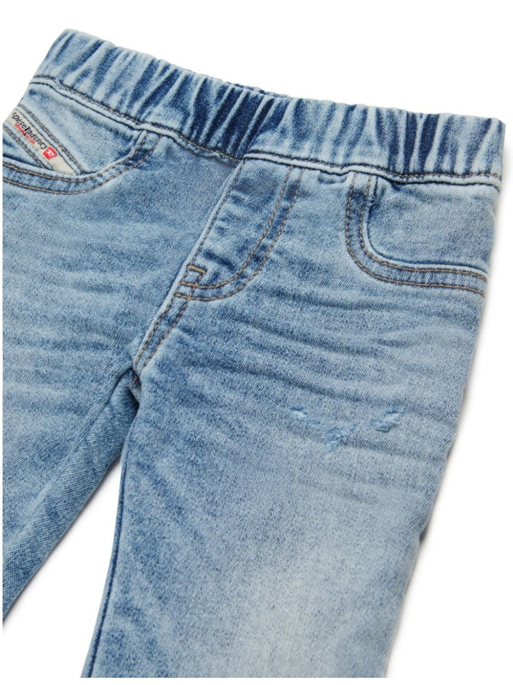I jeans Diesel Kids blu presentano una vita elasticizzata per una vestibilità comoda e regolabile. Le due tasche frontali a marsupio offrono praticità, mentre il denim con effetto schiarito aggiunge un tocco di stile casual e moderno. Perfetti per un look dinamico e alla moda.
