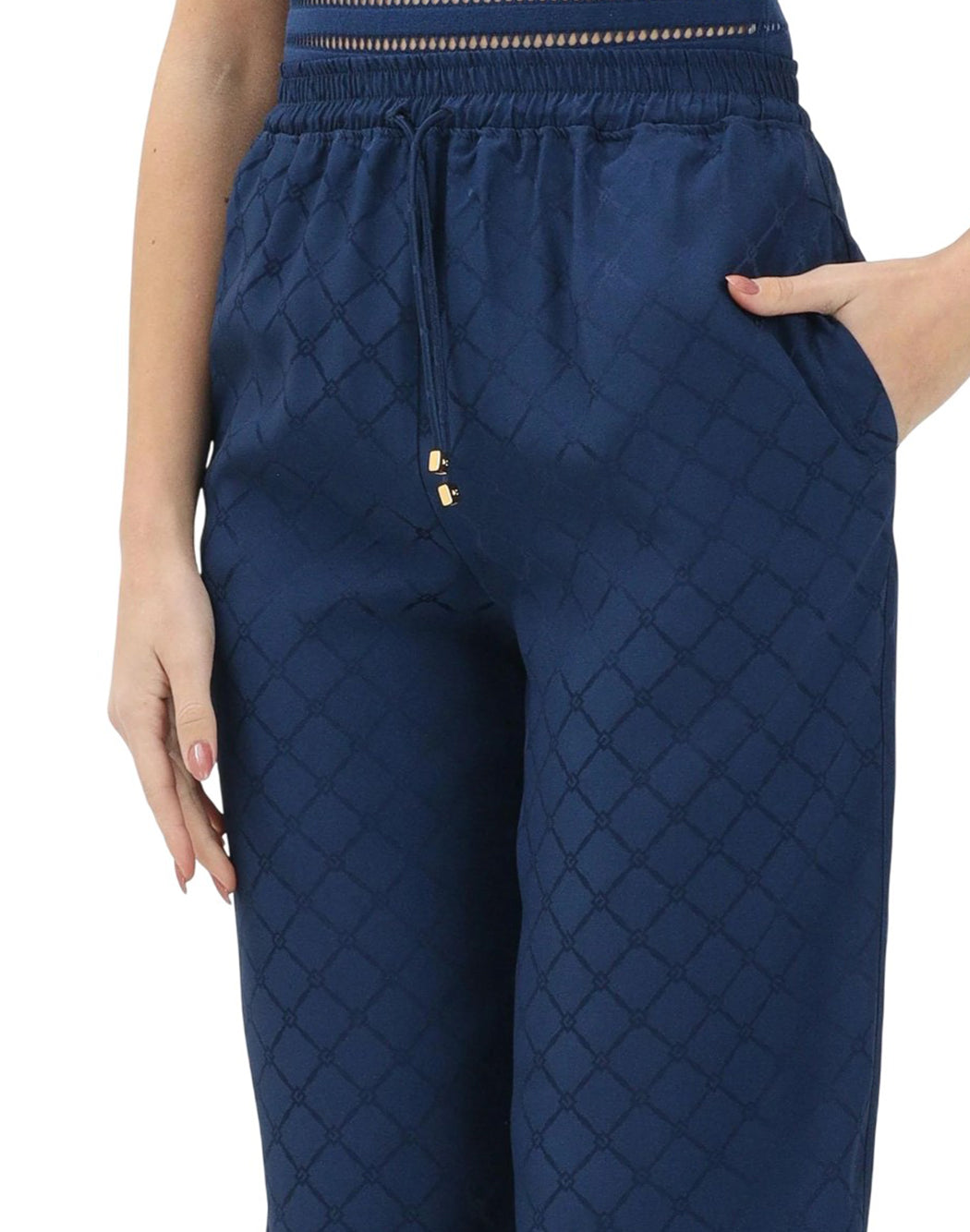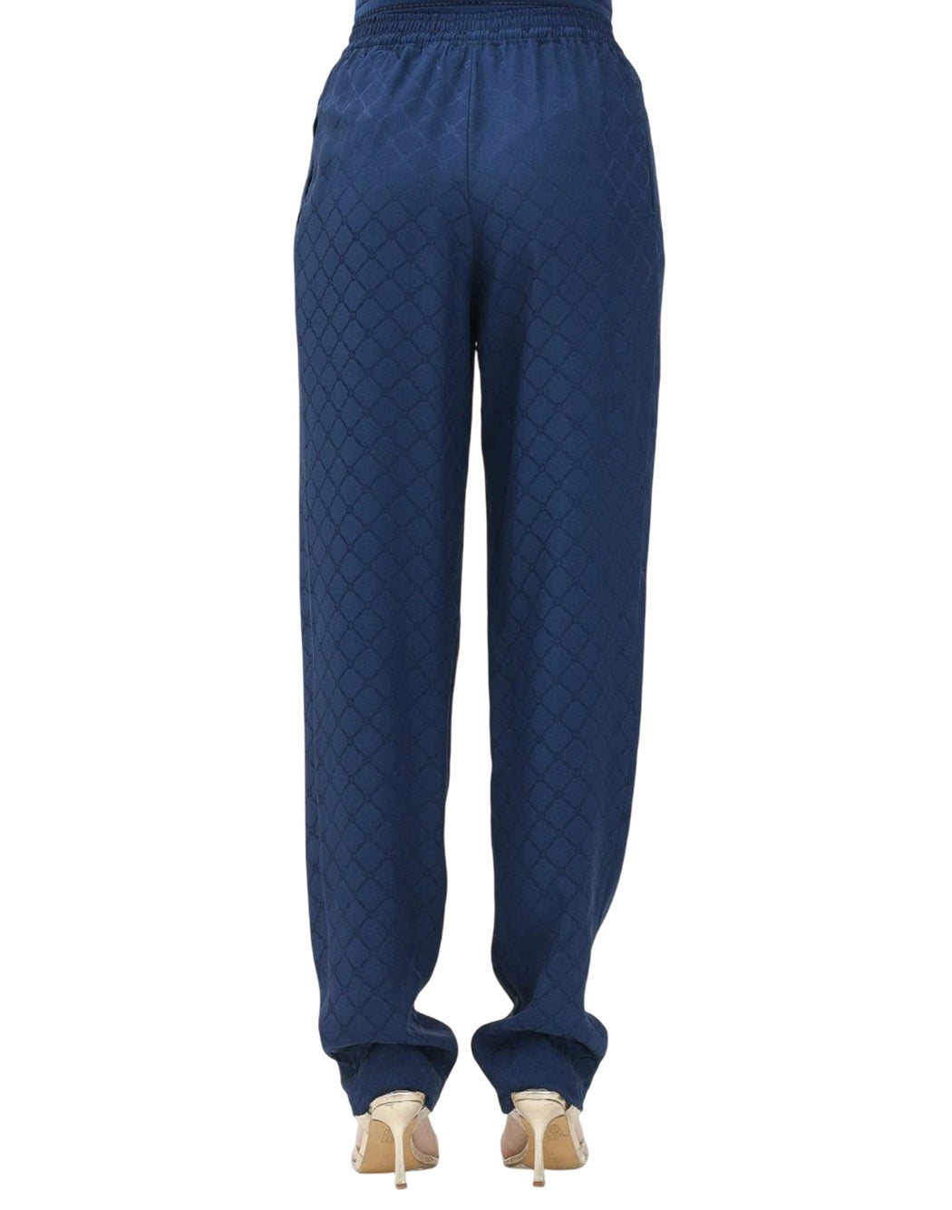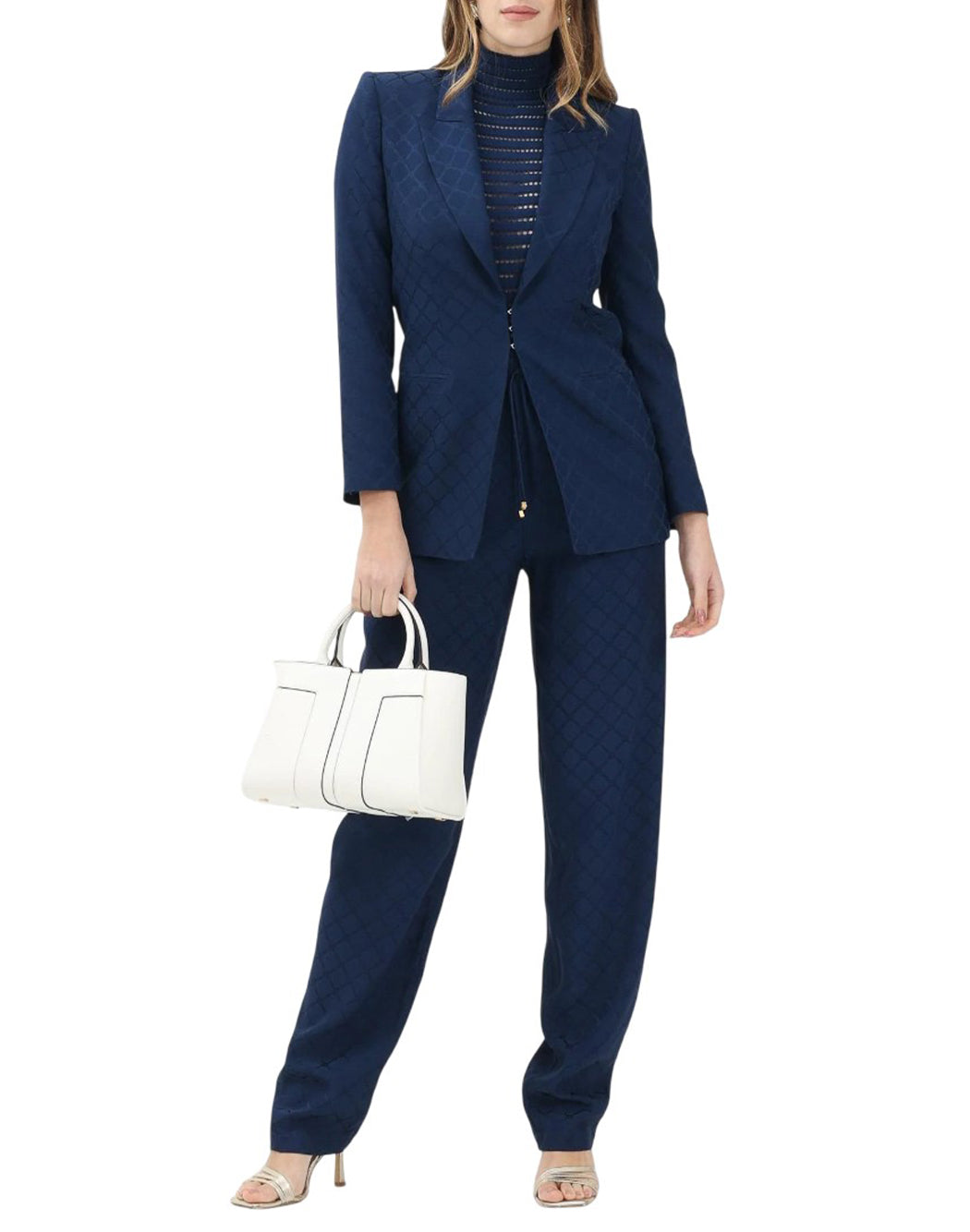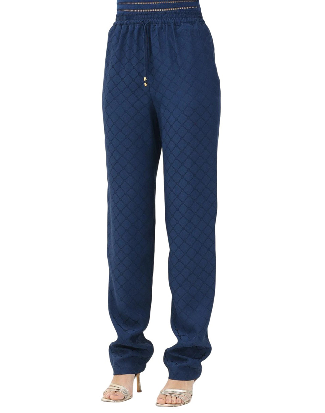 I pantaloni jogger di Elisabetta Franchi sono realizzati in satin con vestibilità regular. Presentano un'elaborata lavorazione jacquard con un motivo a losanghe che dona alla figura una silhouette lineare e luminosa. La vita con elastico e coulisse con lacci assicurano comfort e una vestibilità regolabile. Un capo elegante e moderno, perfetto per uno stile sofisticato ma casual.
