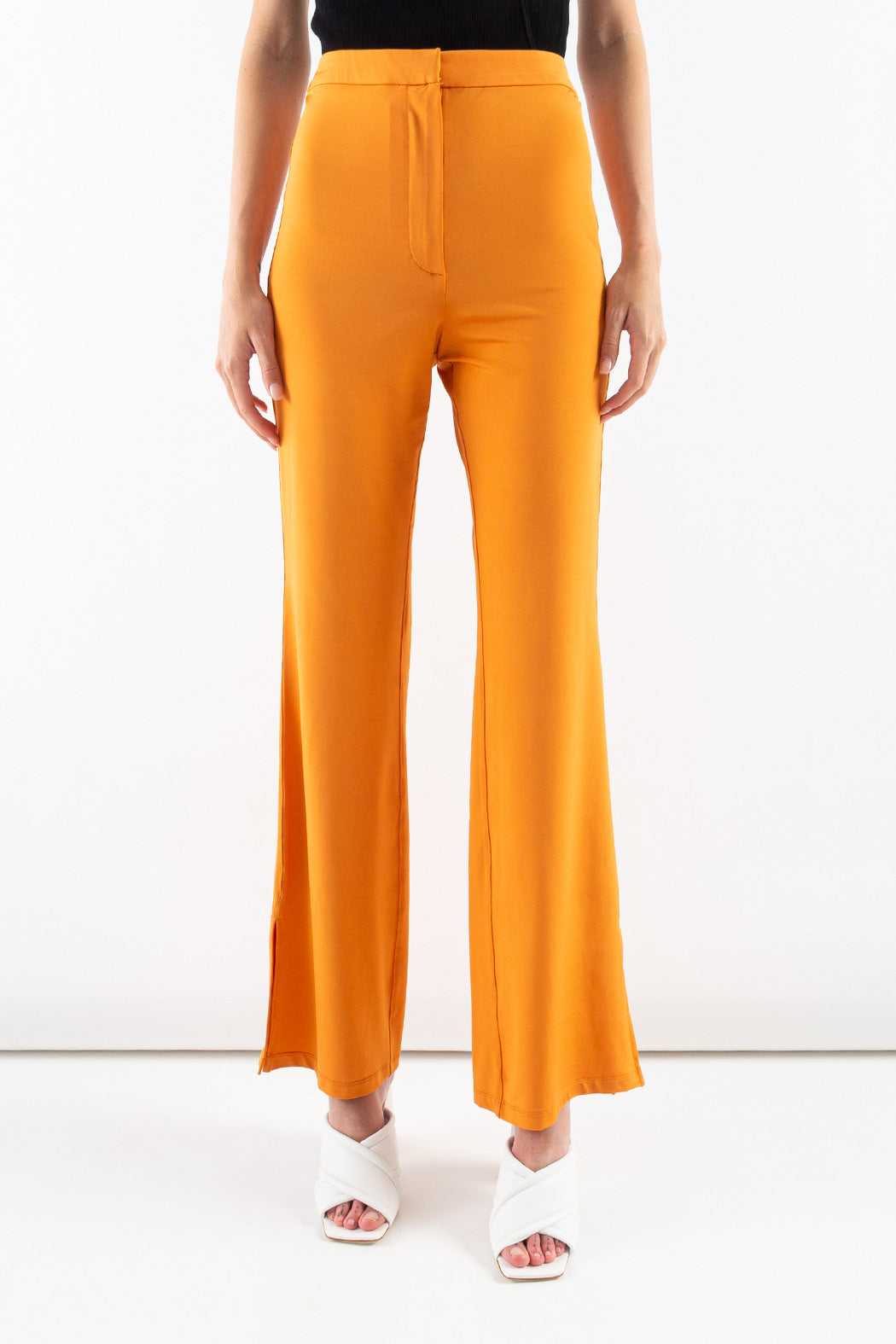 Pantaloni flared REMAIN in viscosa a vita alta e spacchi laterali. Chiusura con cerniera e gancio.