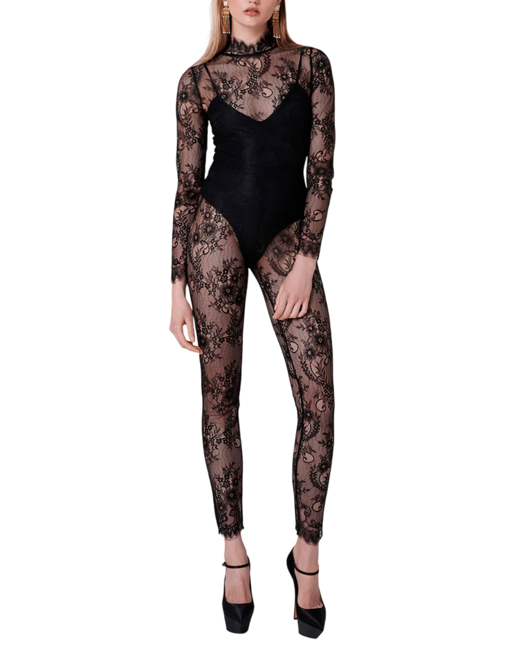 Si tratta di una tuta elegante e sofisticata, realizzata in tessuto di pizzo trasparente che aggiunge un tocco di sensualità e raffinatezza. Il modello presenta un collo alto per uno stile chic e contemporaneo, con una cerniera posteriore a vista che dona un accento moderno. La fodera del corpo è rimovibile, offrendo versatilità e adattabilità a diverse occasioni. La chiusura è completata da bottoni automatici e una nappa decorativa, che aggiungono dettagli ricercati al design. Perfetta per eventi formali o serate glamour.